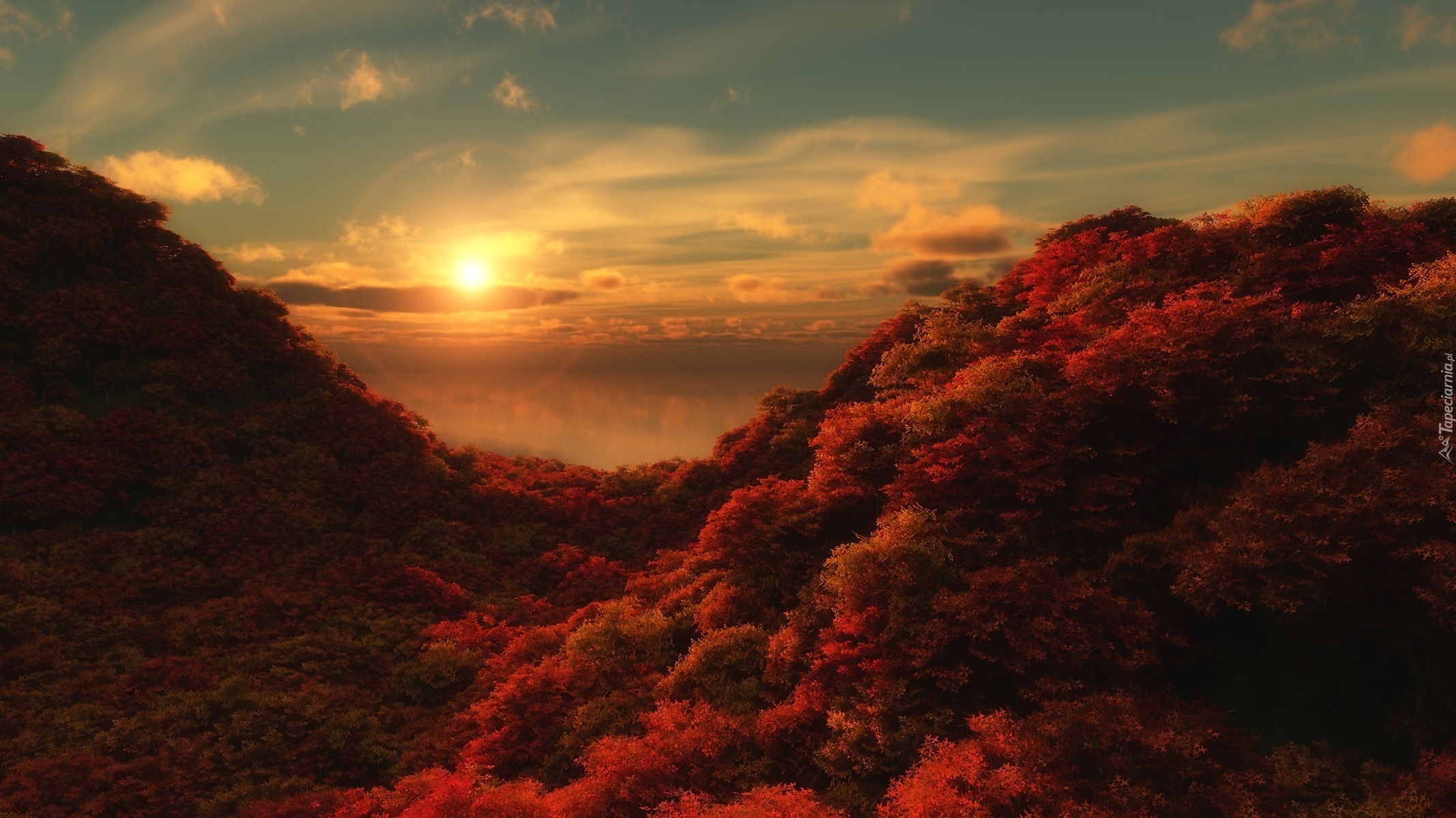 Edytor tapety: Zachód słońca, Lasy, Jesień, Wzgórza