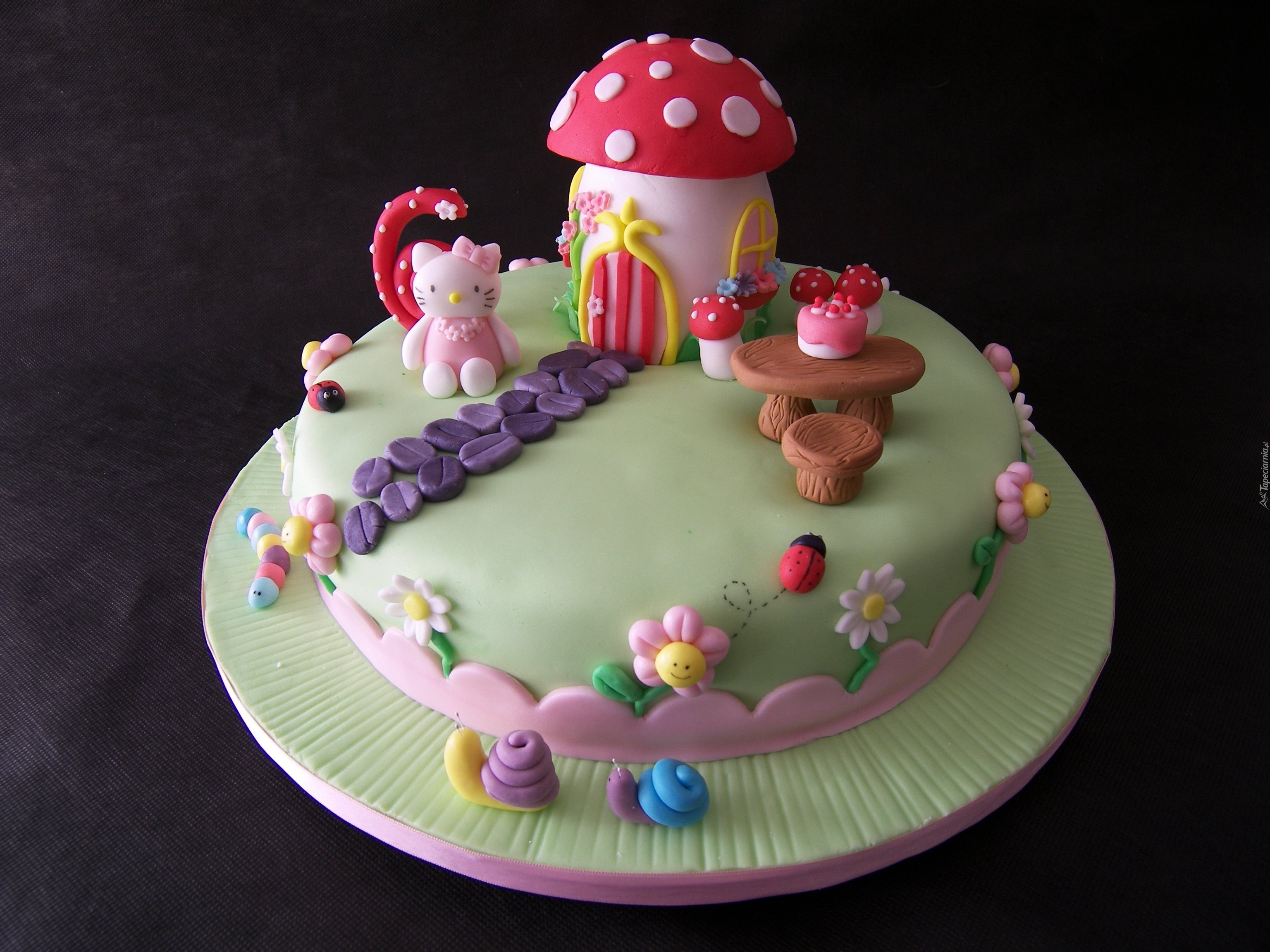Edytor tapety: tort, słodycze, muchomorek, hello kitty