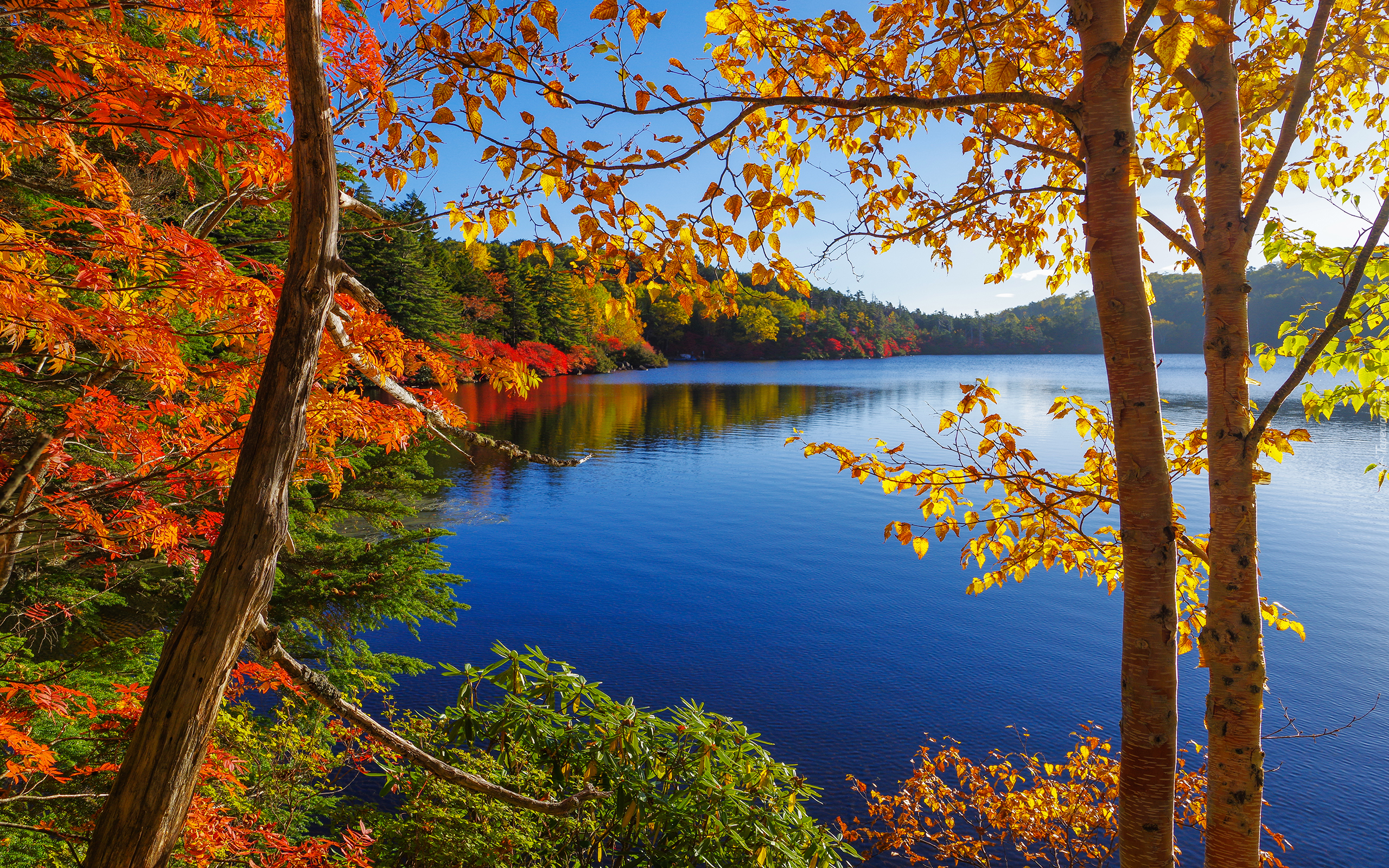 Edytor tapety: Jezioro, Las, Drzewa, Jesień