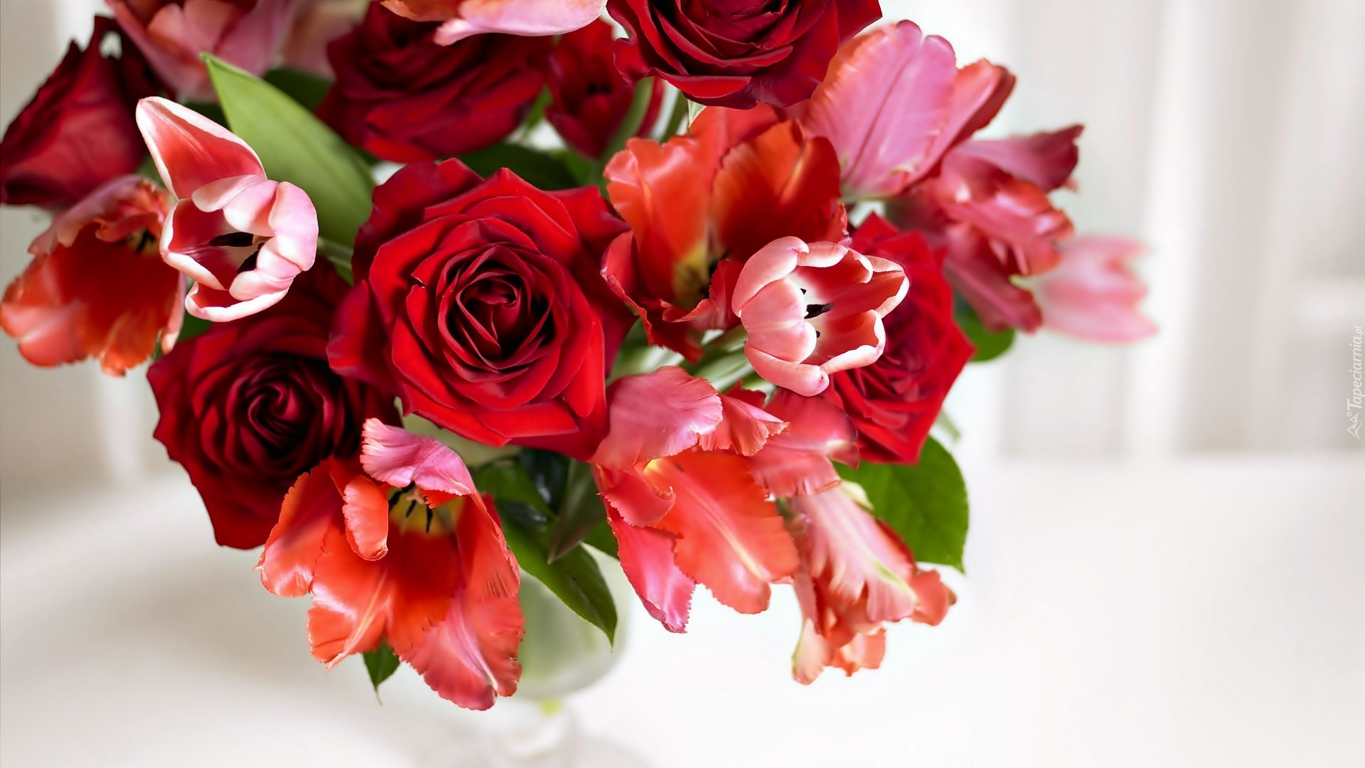 Edytor tapety: Bukiet róż, Tulipany