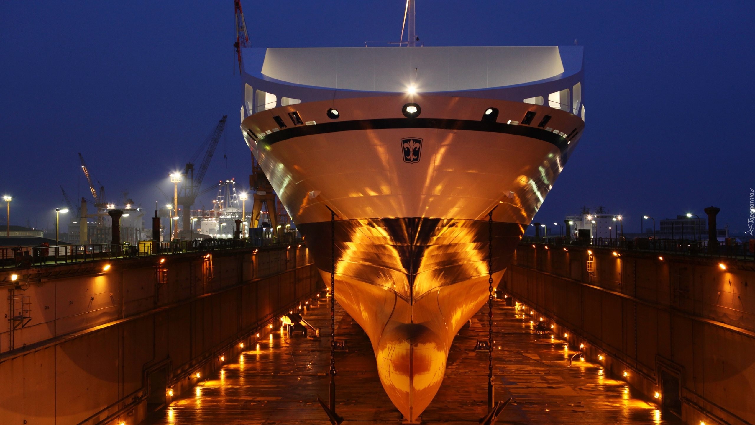 Edytor tapety: Statek, Dok, Noc, Reflektory