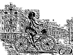 Edytor tapety: Kobieta, Rower, Miasto, Grafika 2D