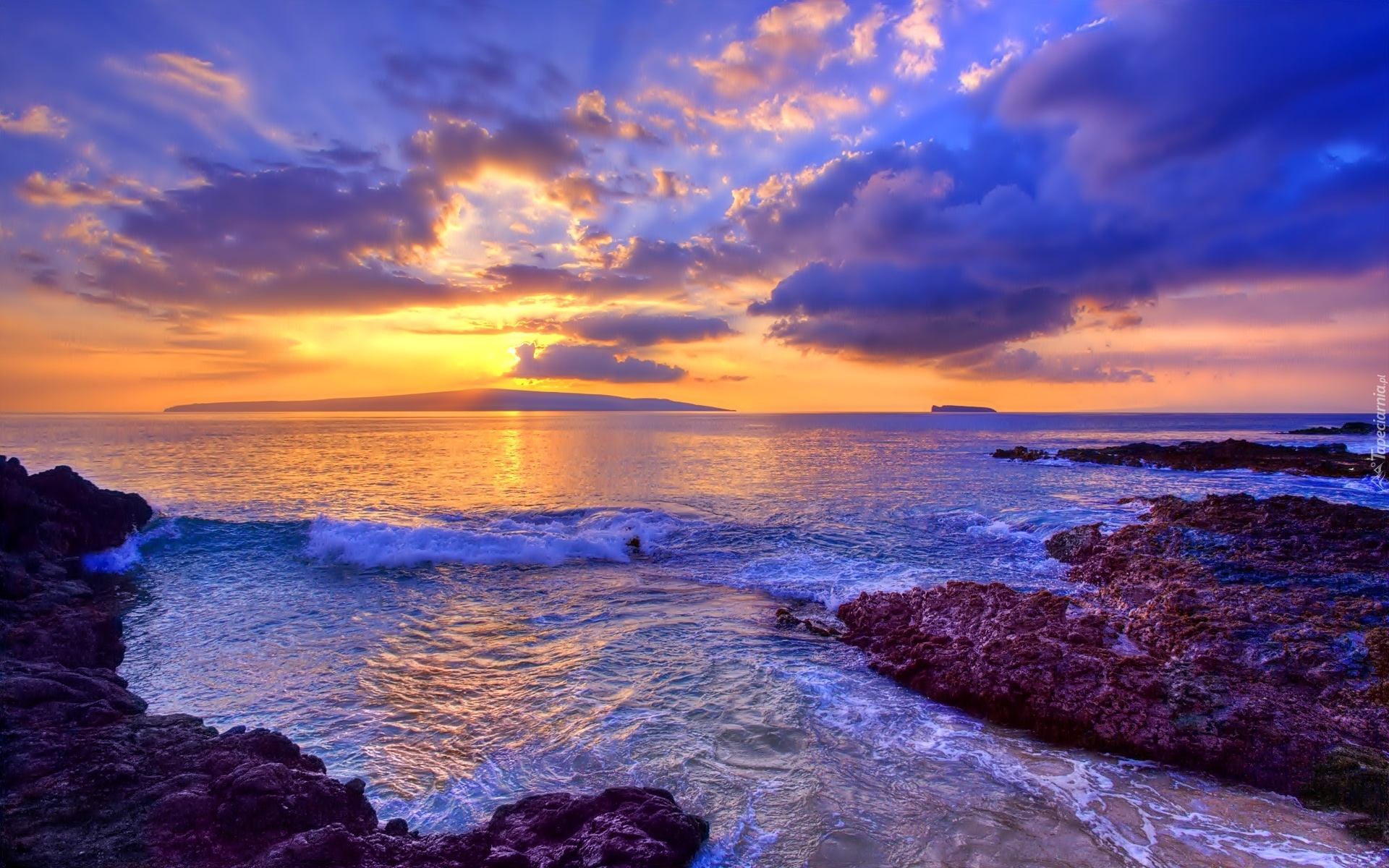 Edytor tapety: Morze, Zachód Słońca, Wybrzeże
