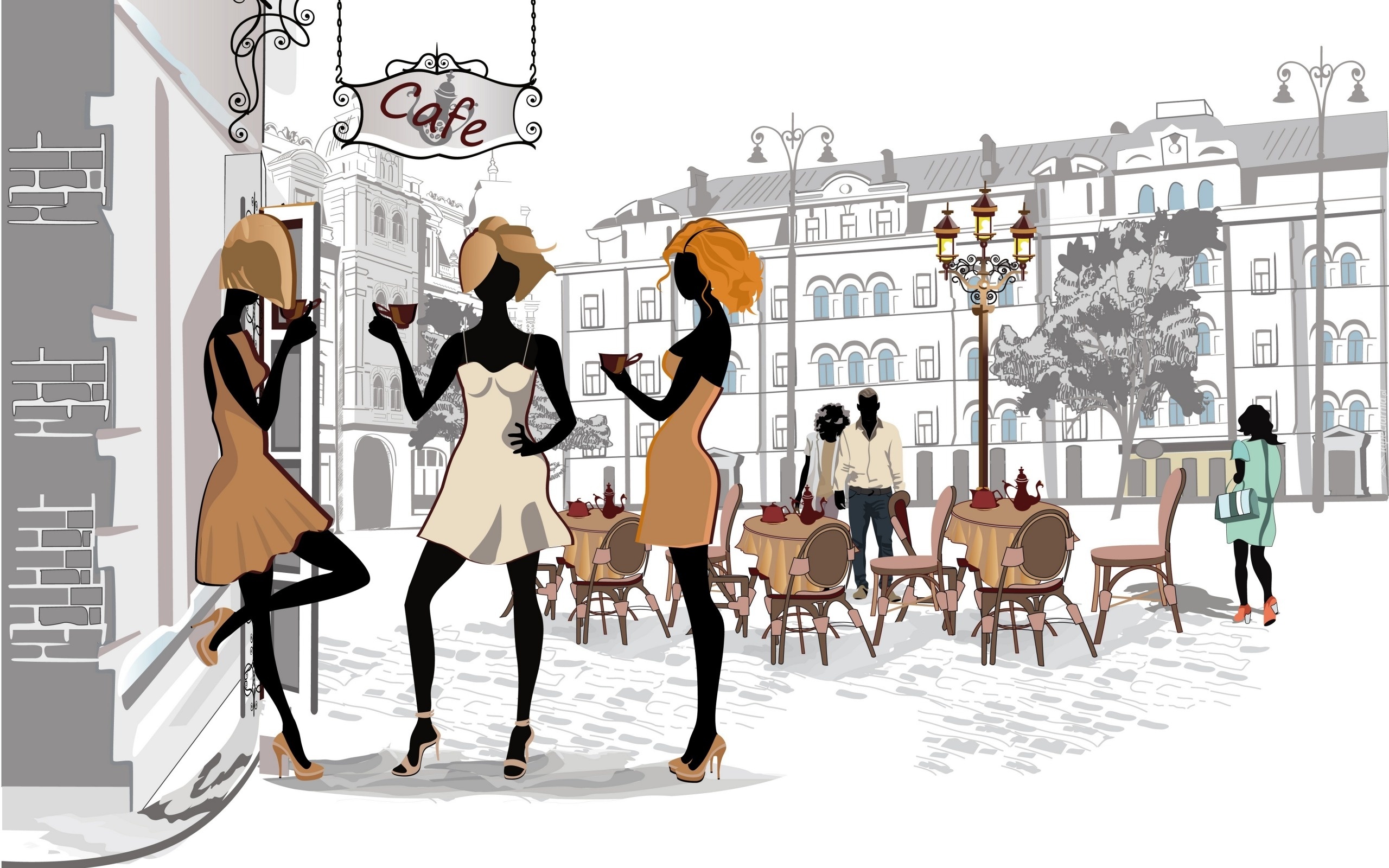 Edytor tapety: Kawiarnie, Paryż, Dziewczyny, Miasto, Ulica, Grafika 2D
