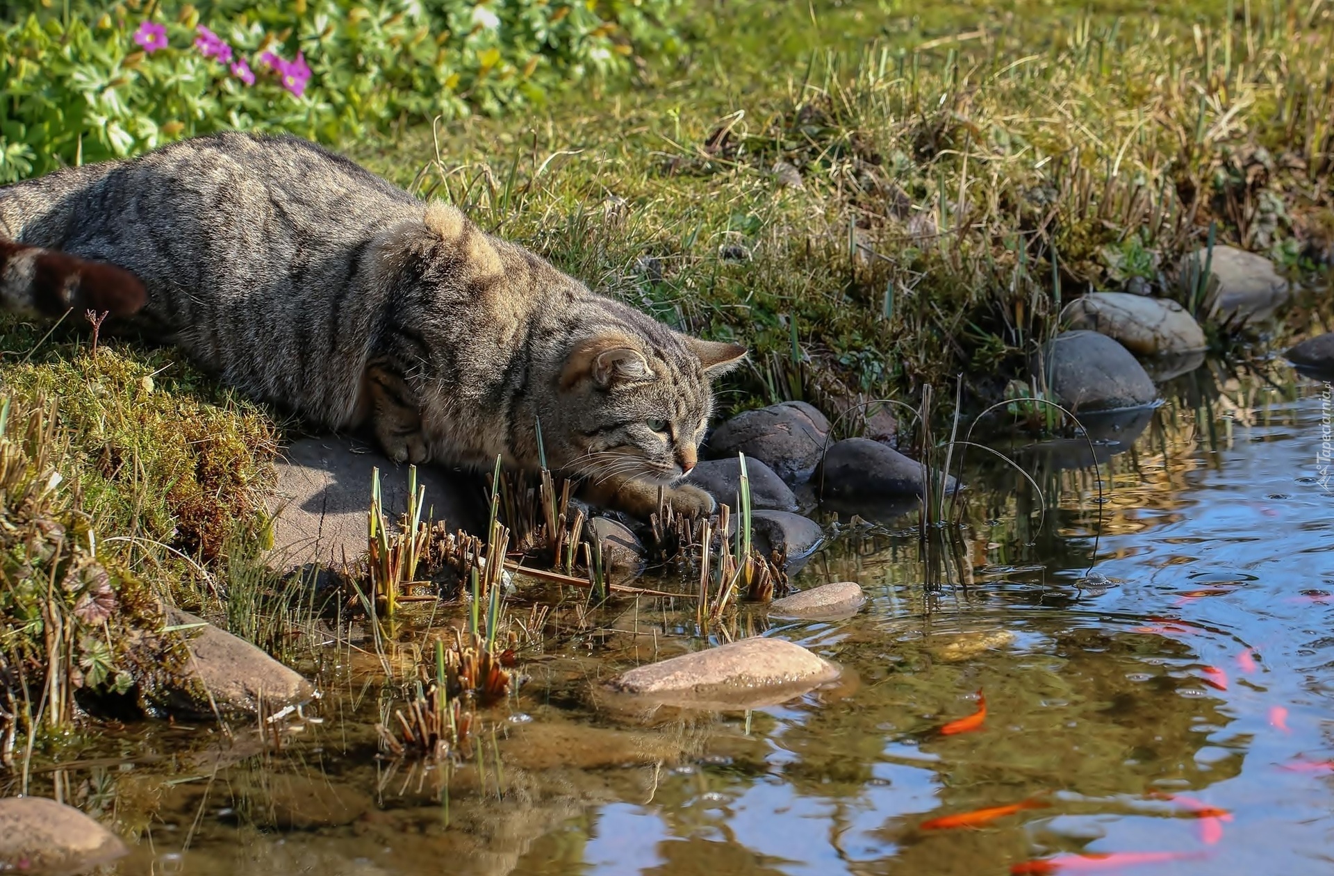 Edytor tapety: Kot, Ryby, Staw, Kamienie