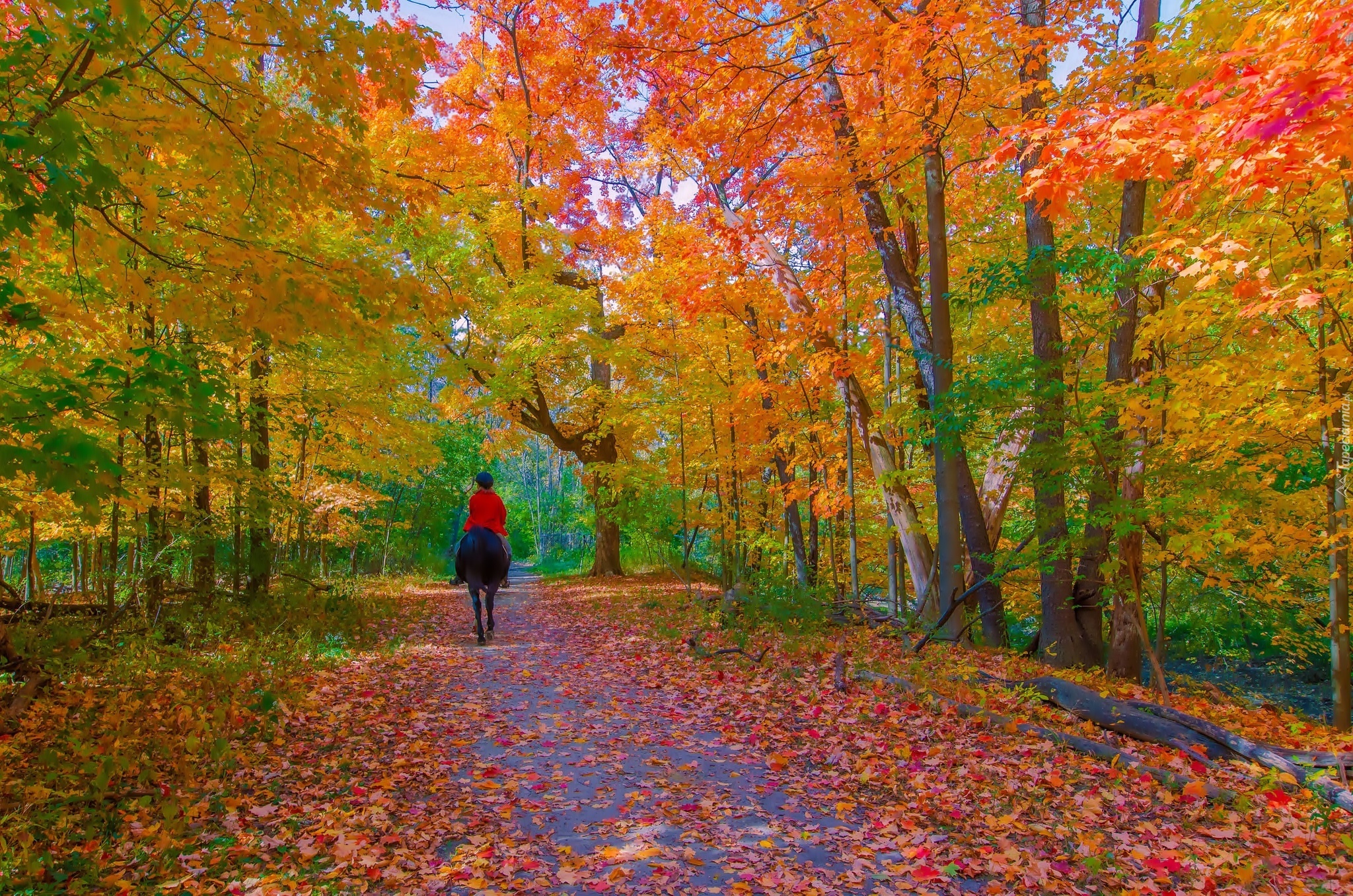 Edytor tapety: Jesień, Droga, Park, Koń
