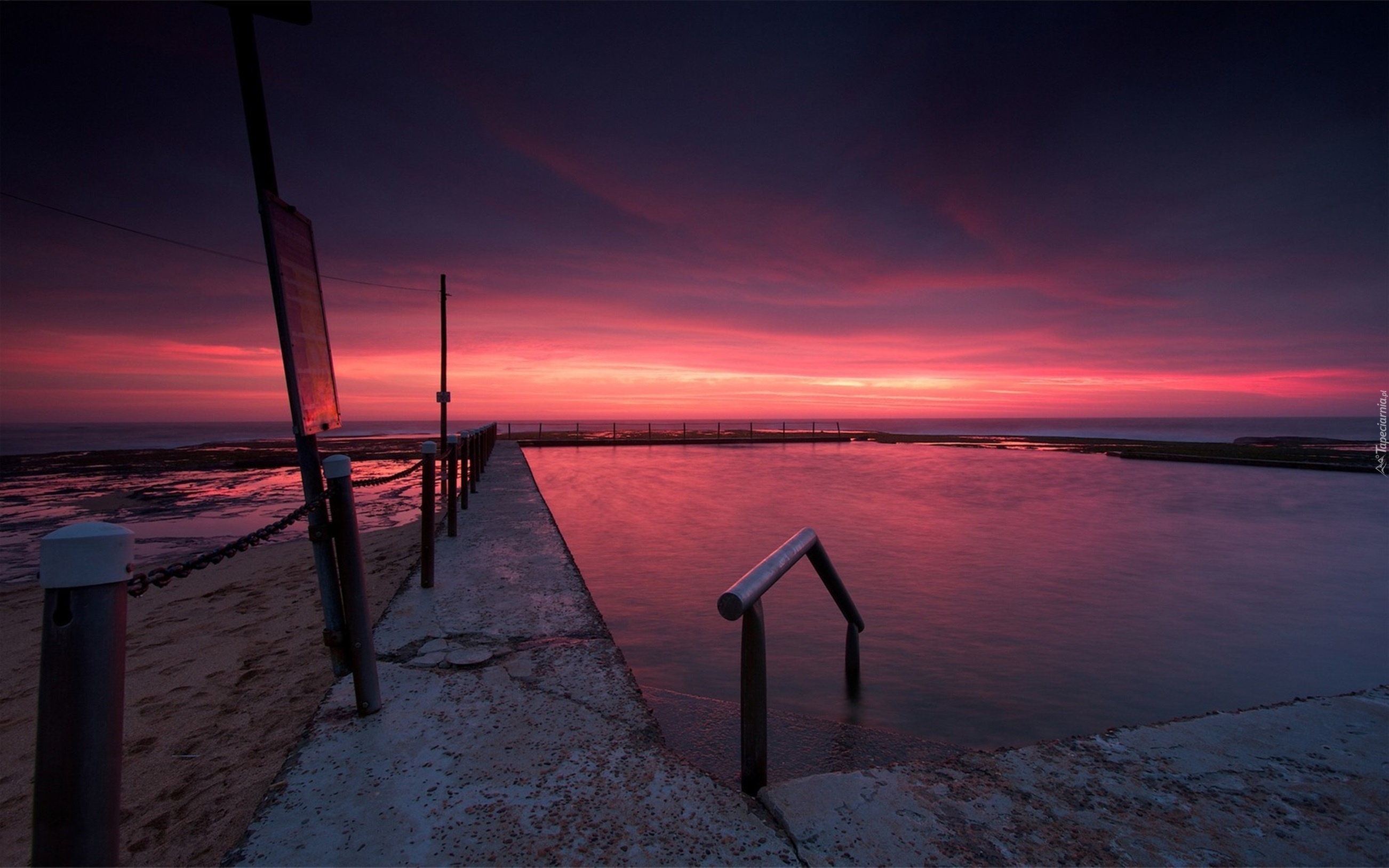 Edytor tapety: Most, Woda, Niebo, Chmury, Zima, Zachód słońca