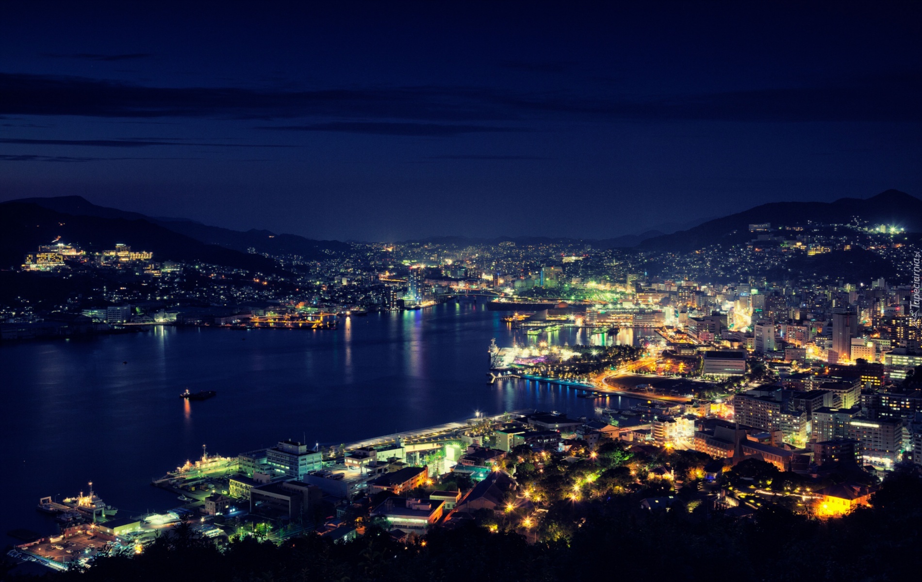 Edytor tapety: Nagasaki, Miasto, Nocą, Rzeka