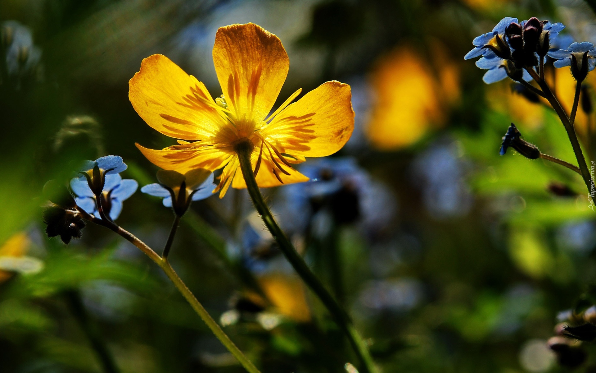 Edytor tapety: Żółte, Niebieskie, Kwiaty, Rozmycie