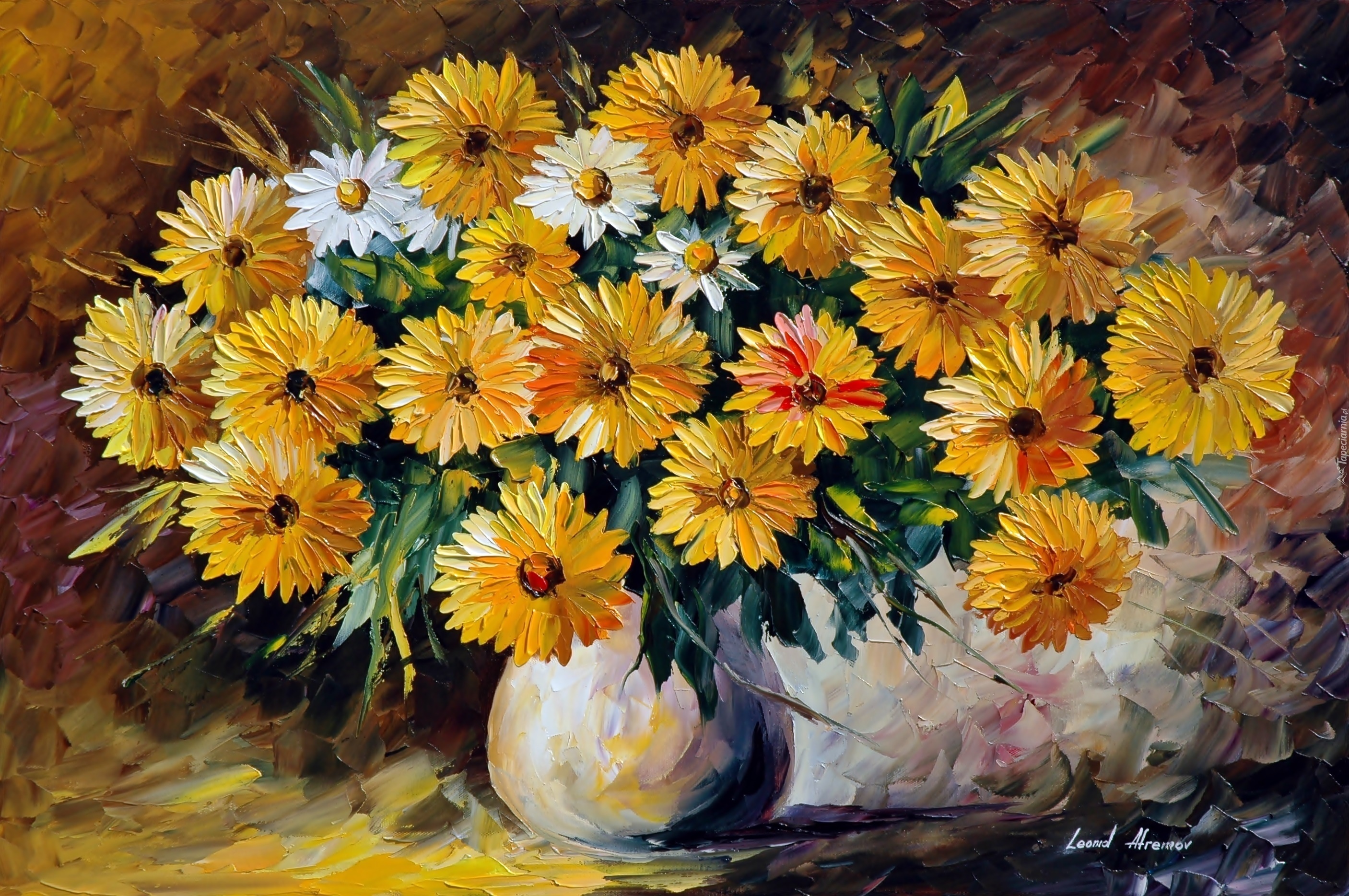 Edytor tapety: Leonid Afremov, Astry, Wazon