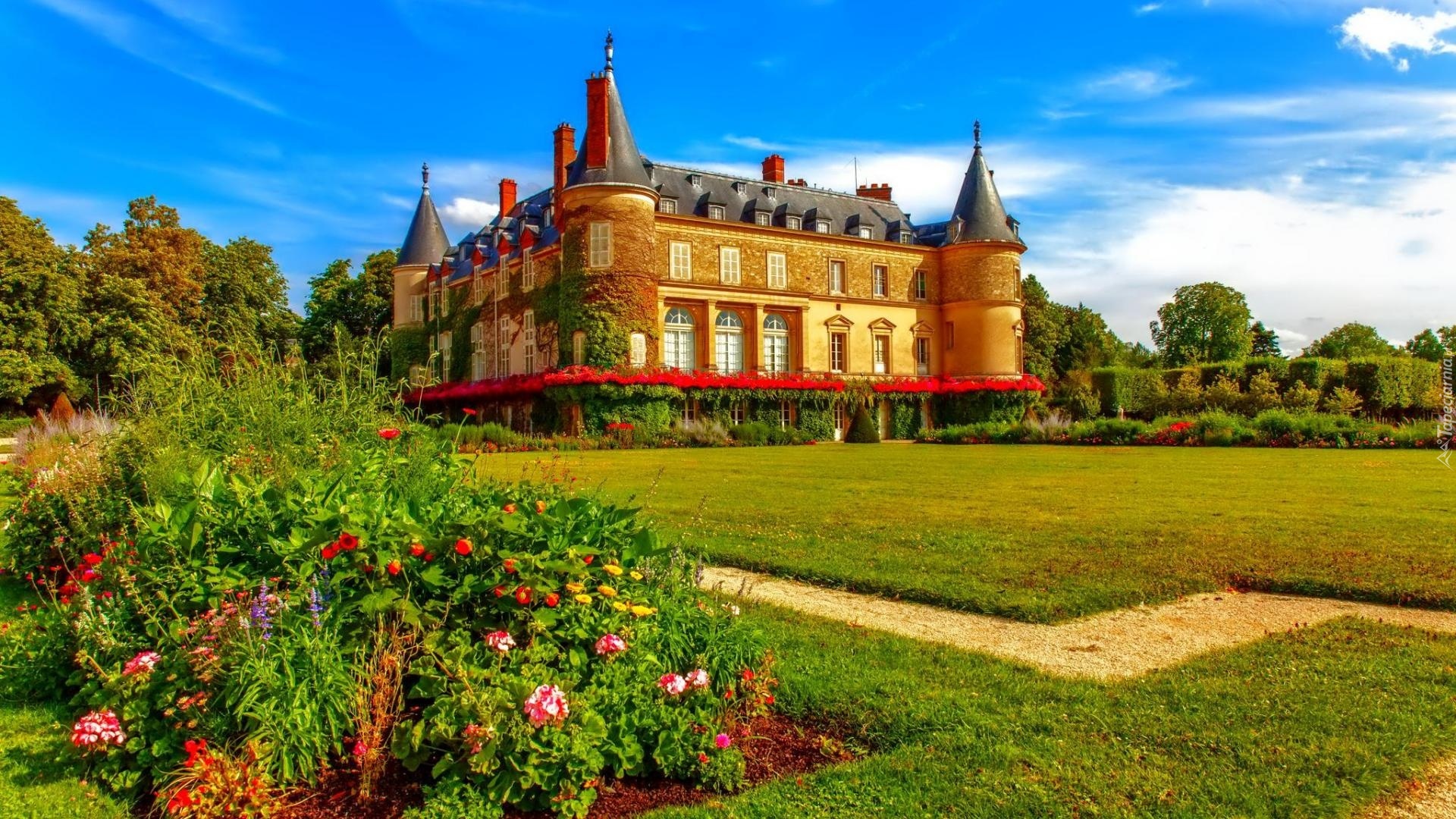 Edytor tapety: Pałac, Ogród, Trawnik