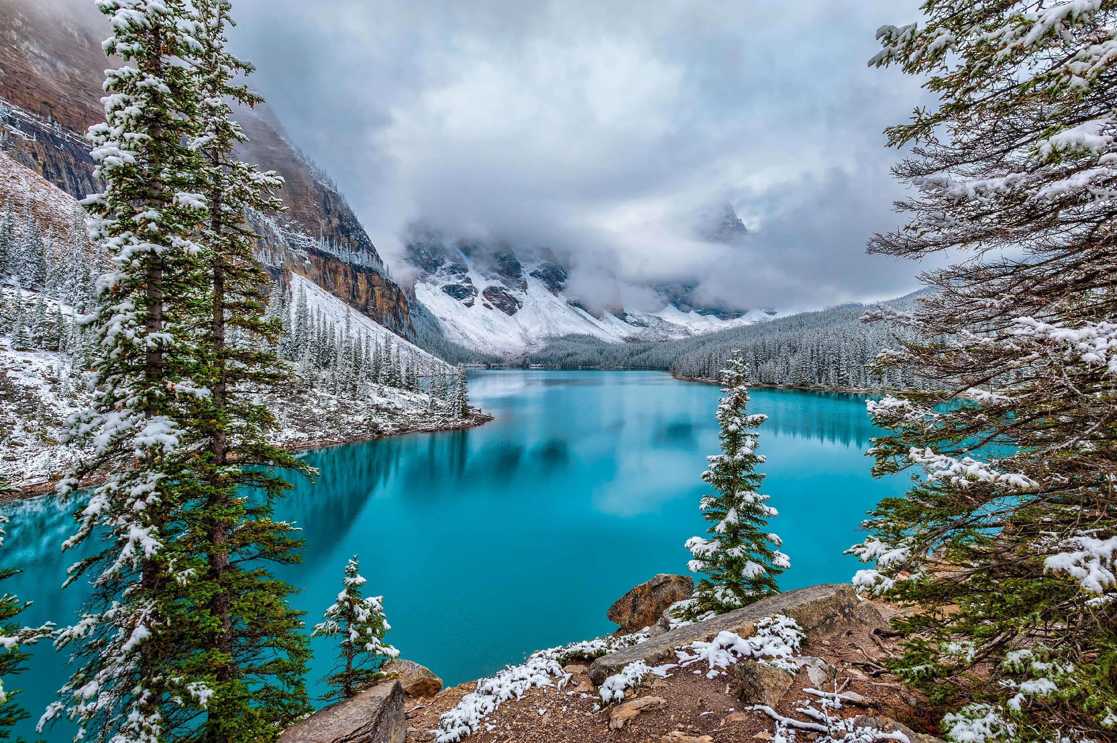 Edytor tapety: Góry, Mgła, Jezioro, Zima