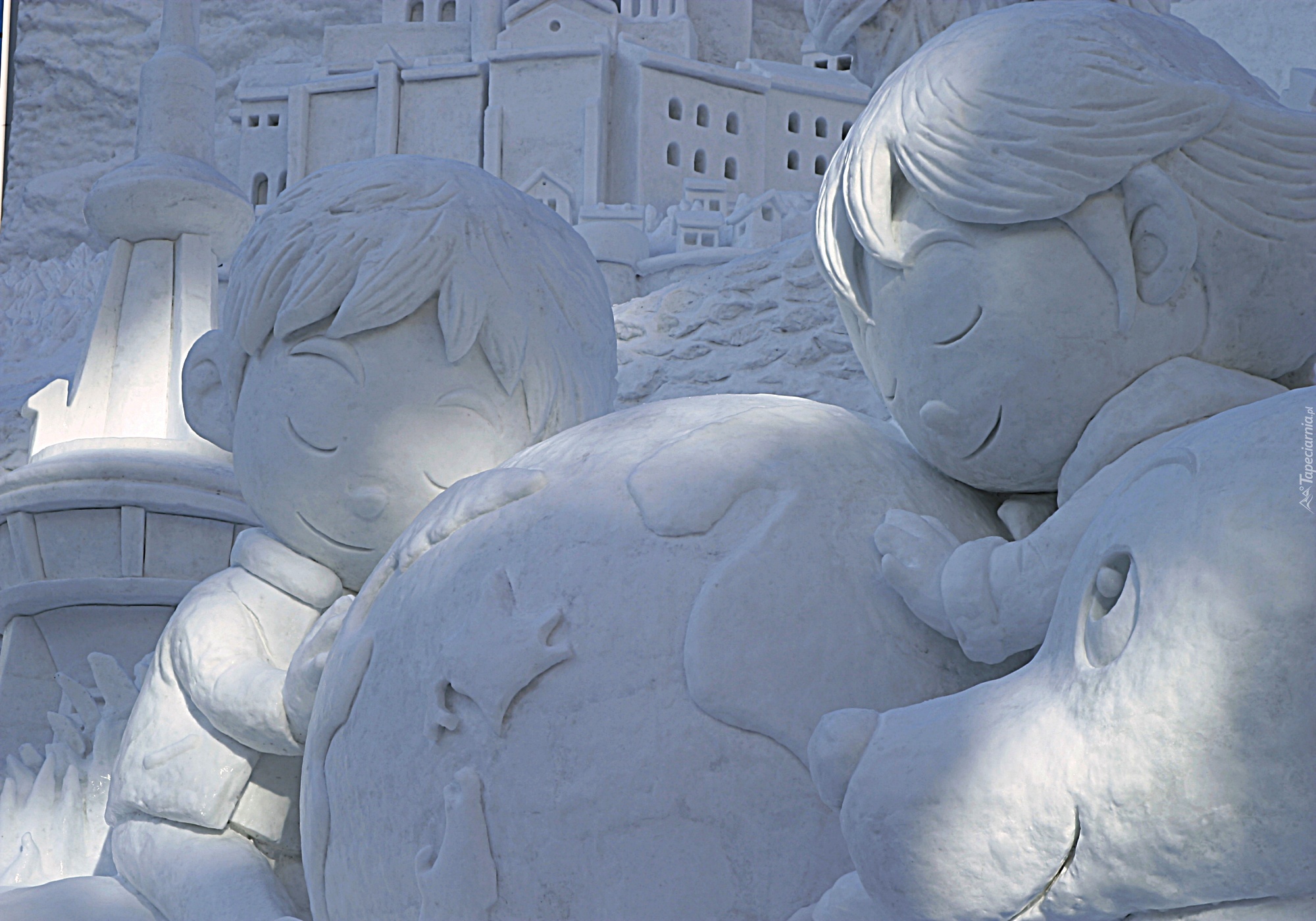 Edytor tapety: Rzeźba Śnieżna, Dzieci, Pies, Kula, Ziemska, Festiwal Śniegu