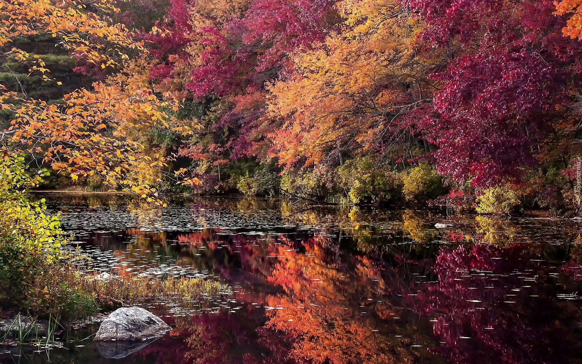 Edytor tapety: Jesień, Rzeka, Las, Kolorowe, Drzewa