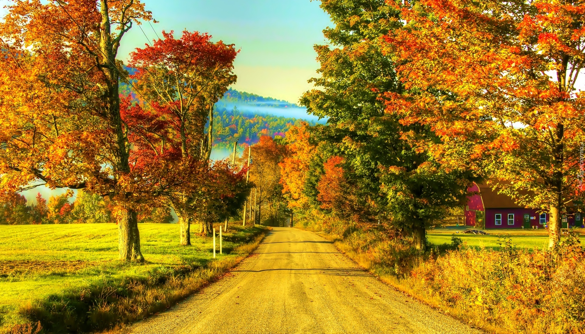 Edytor tapety: Jesień, Droga, Drzewa, Dom