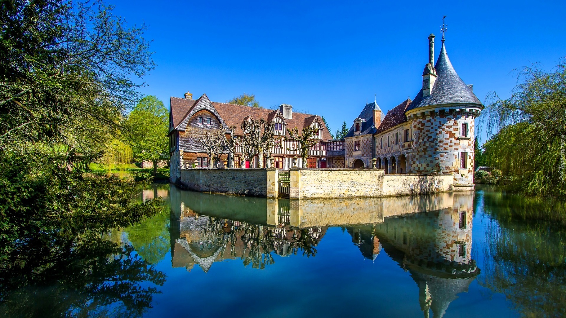 Edytor tapety: Zamek, Wieża, Staw, Drzewa