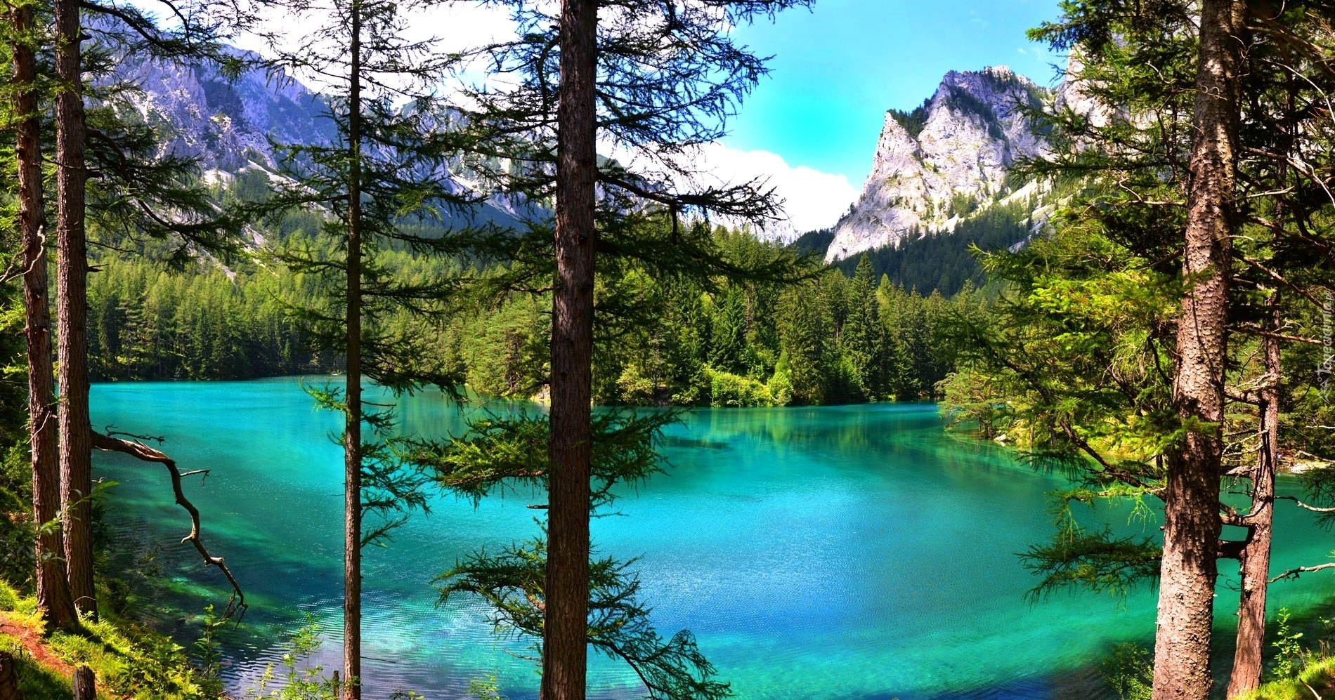 Edytor tapety: Jezioro, Góry, Las, Drzewa