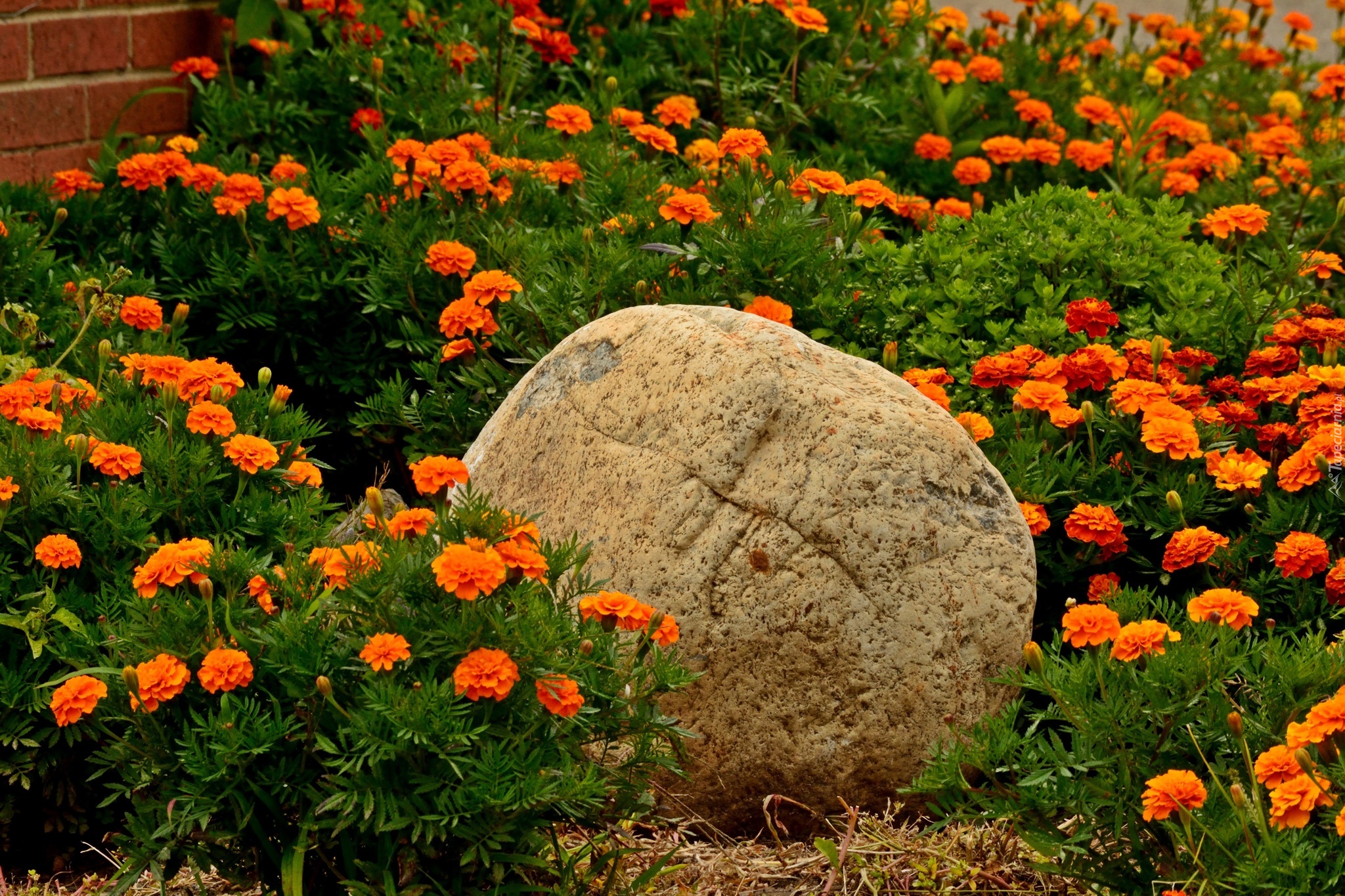 Edytor tapety: Ogród, Kamień, Aksamitki