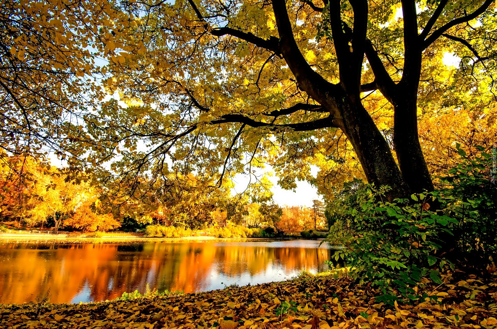 Edytor tapety: Jesień, Drzewa, Rzeka, Liście