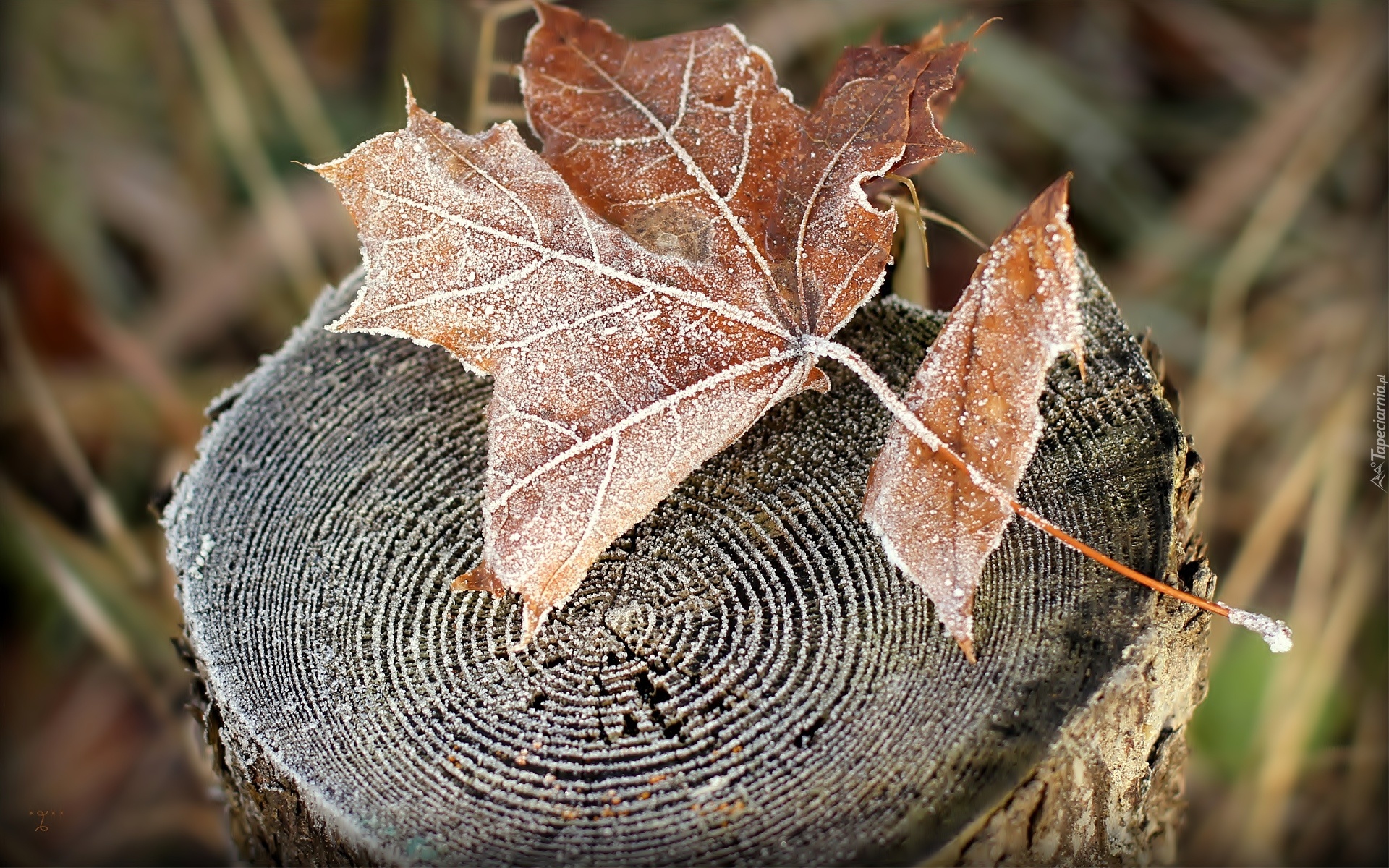 Edytor tapety: Pień, Oszroniony, Liść, Jesień