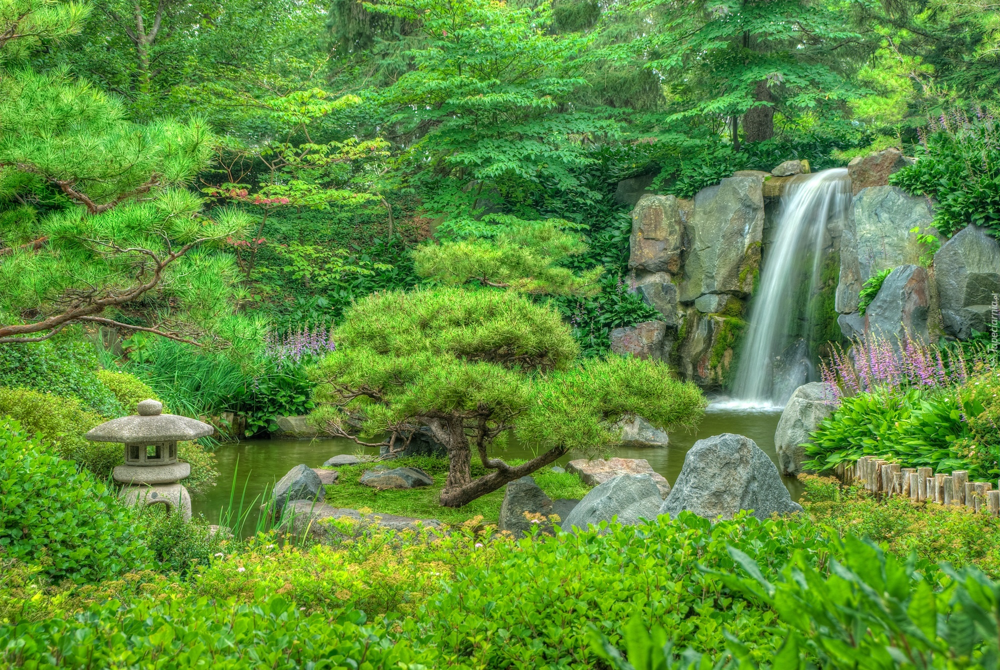 Edytor tapety: Wodospad, Skały, Ogród