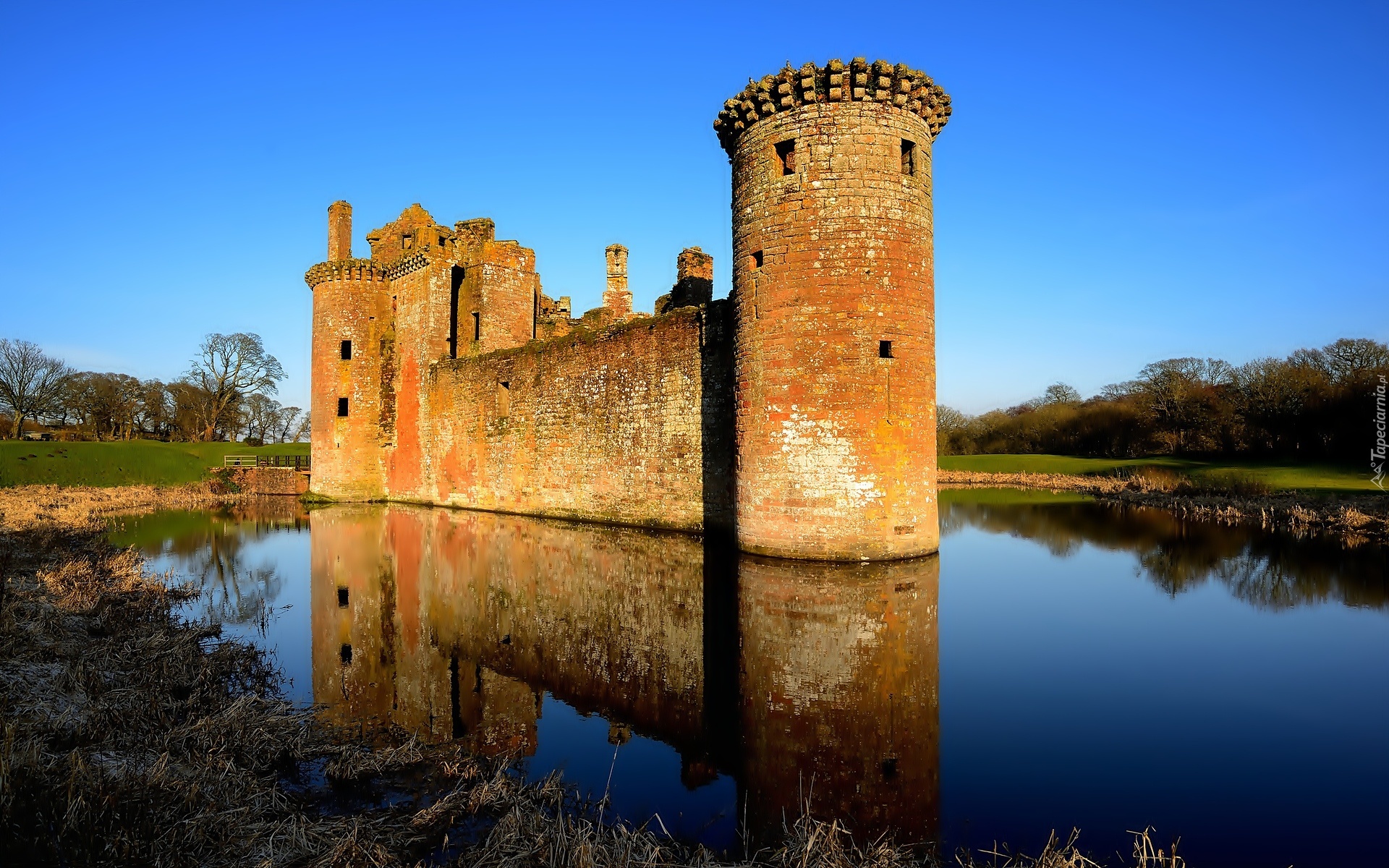 Edytor tapety: Zamek Caerlaverock, Rejon Dumfries, Szkocja, Fosa
