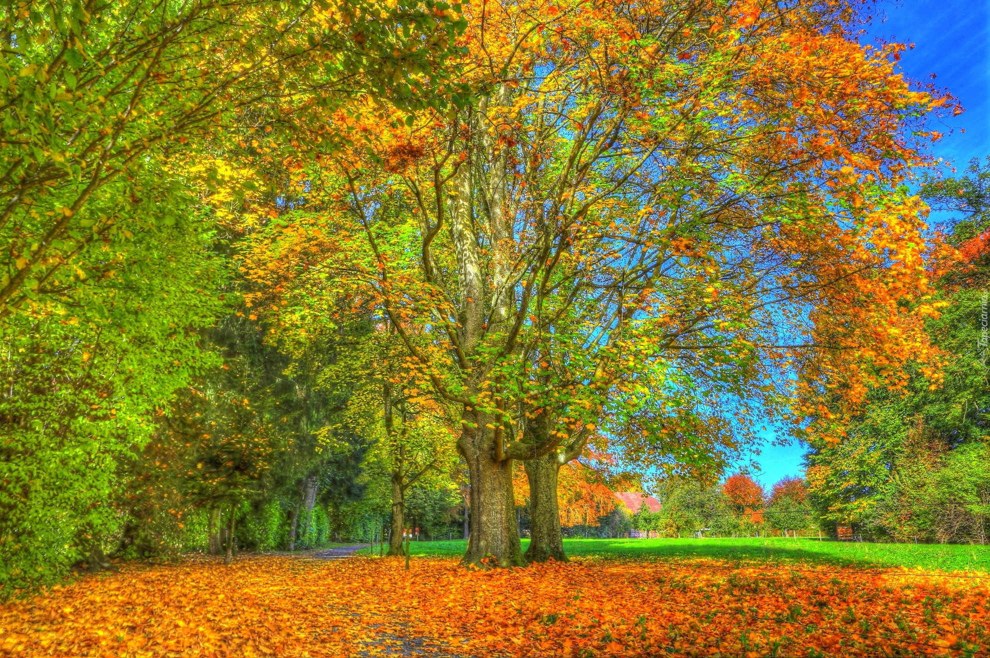 Edytor tapety: Jesień, Drzewa, Liście, Trawa