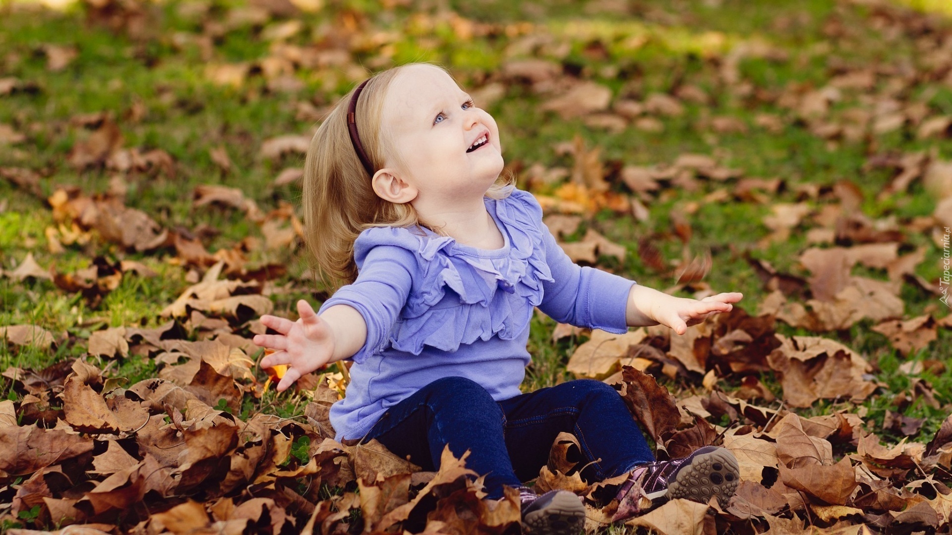 Edytor tapety: Radosne, Dziecko, Dziewczynka, Jesień, Liście