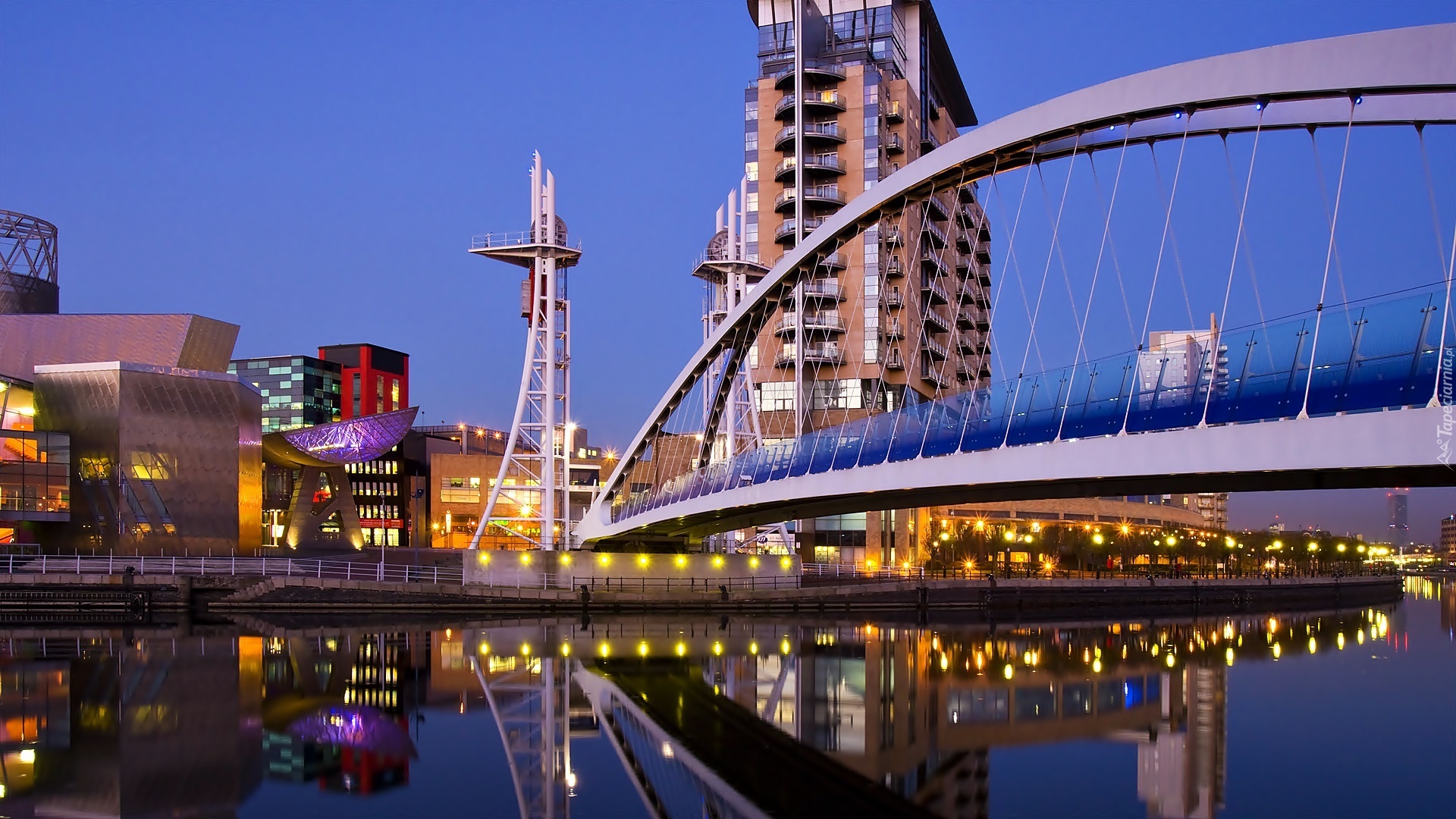 Edytor tapety: Rzeka, Irwell, Most, Manchester, Miasto, Nocą