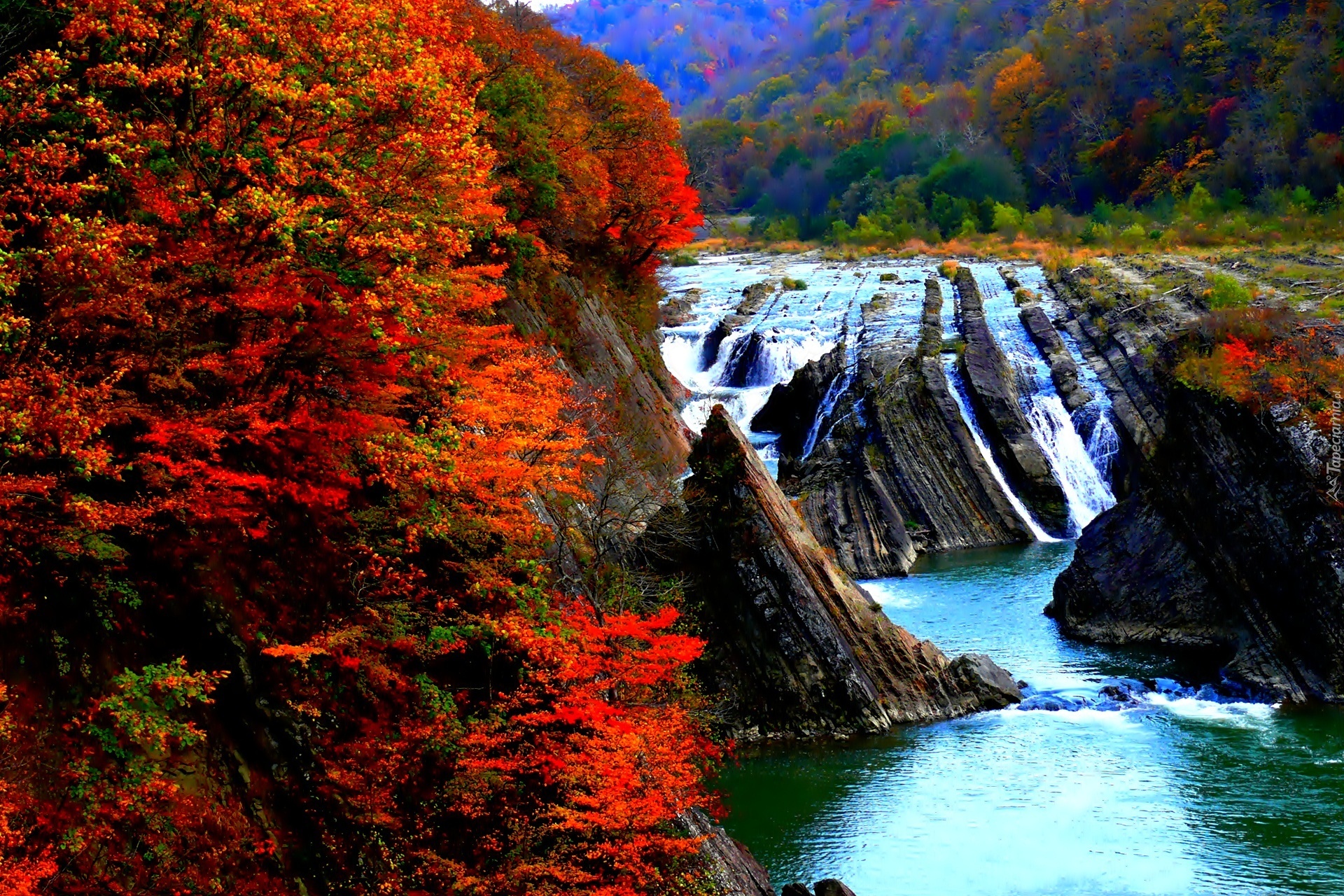Edytor tapety: Jesień, Skały, Rzeka