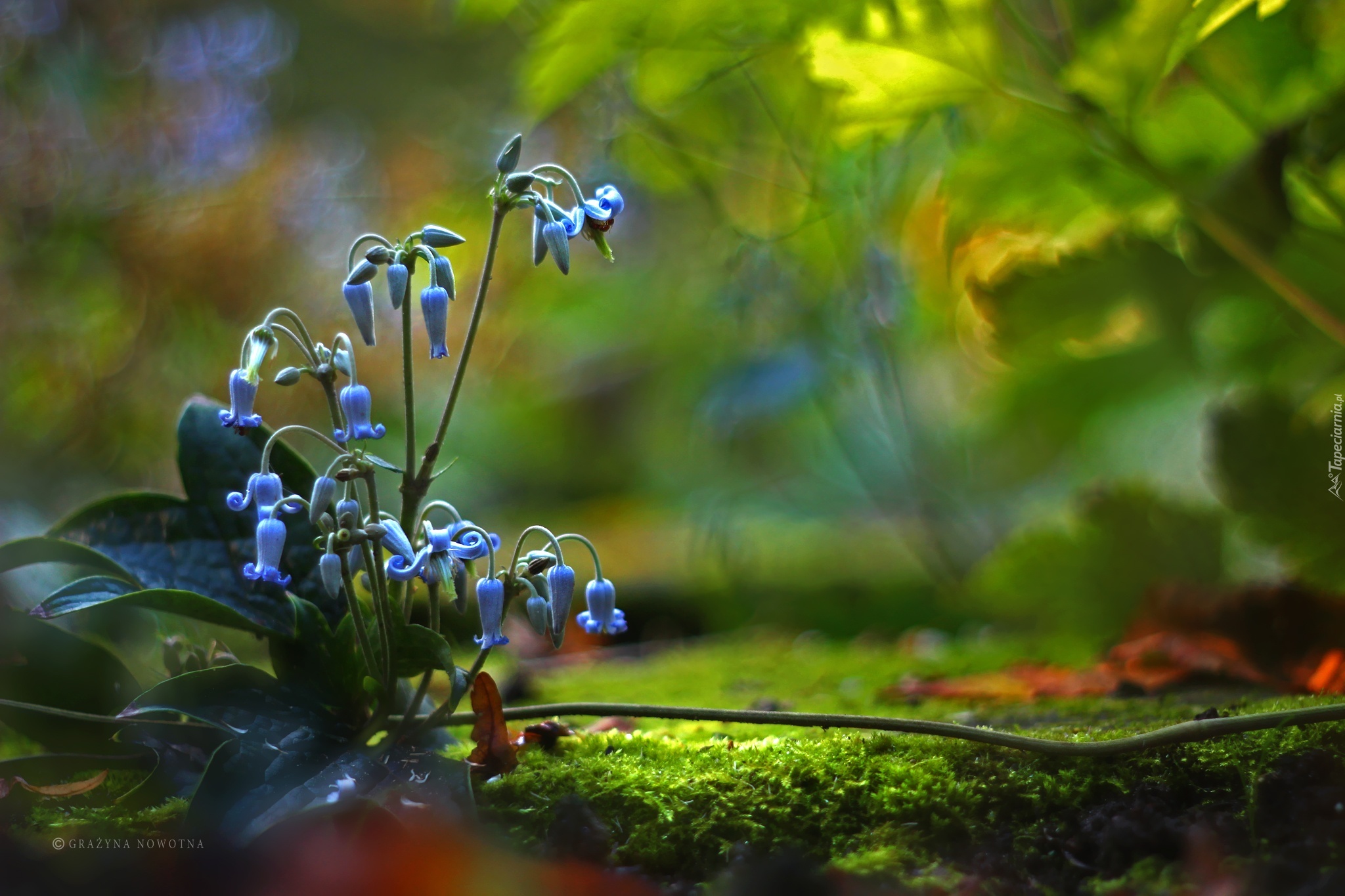 Edytor tapety: Niebieskie, Kwiatki, Dzwonki, Mech
