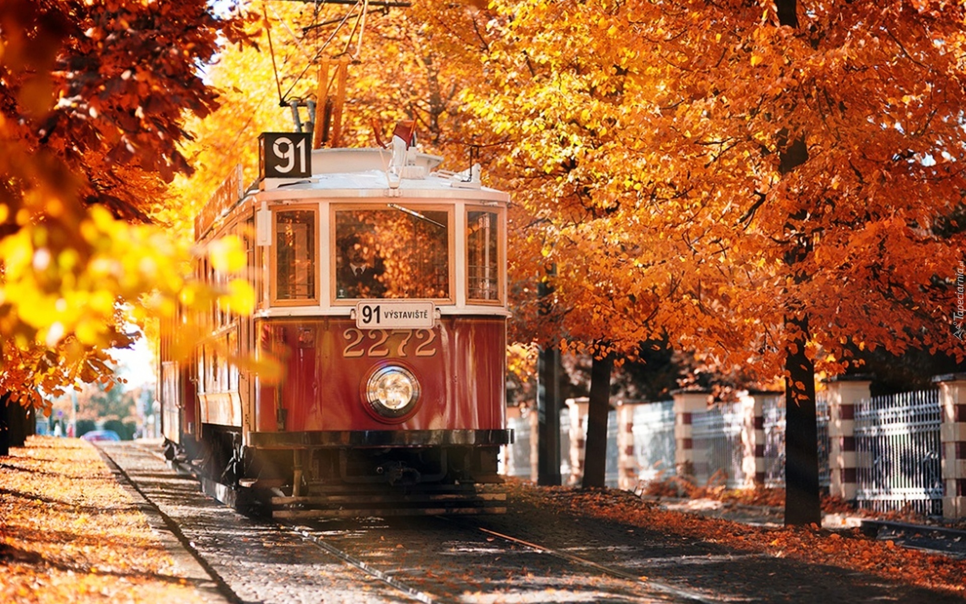 Edytor tapety: Tramwaj, Jesień, Drzewa