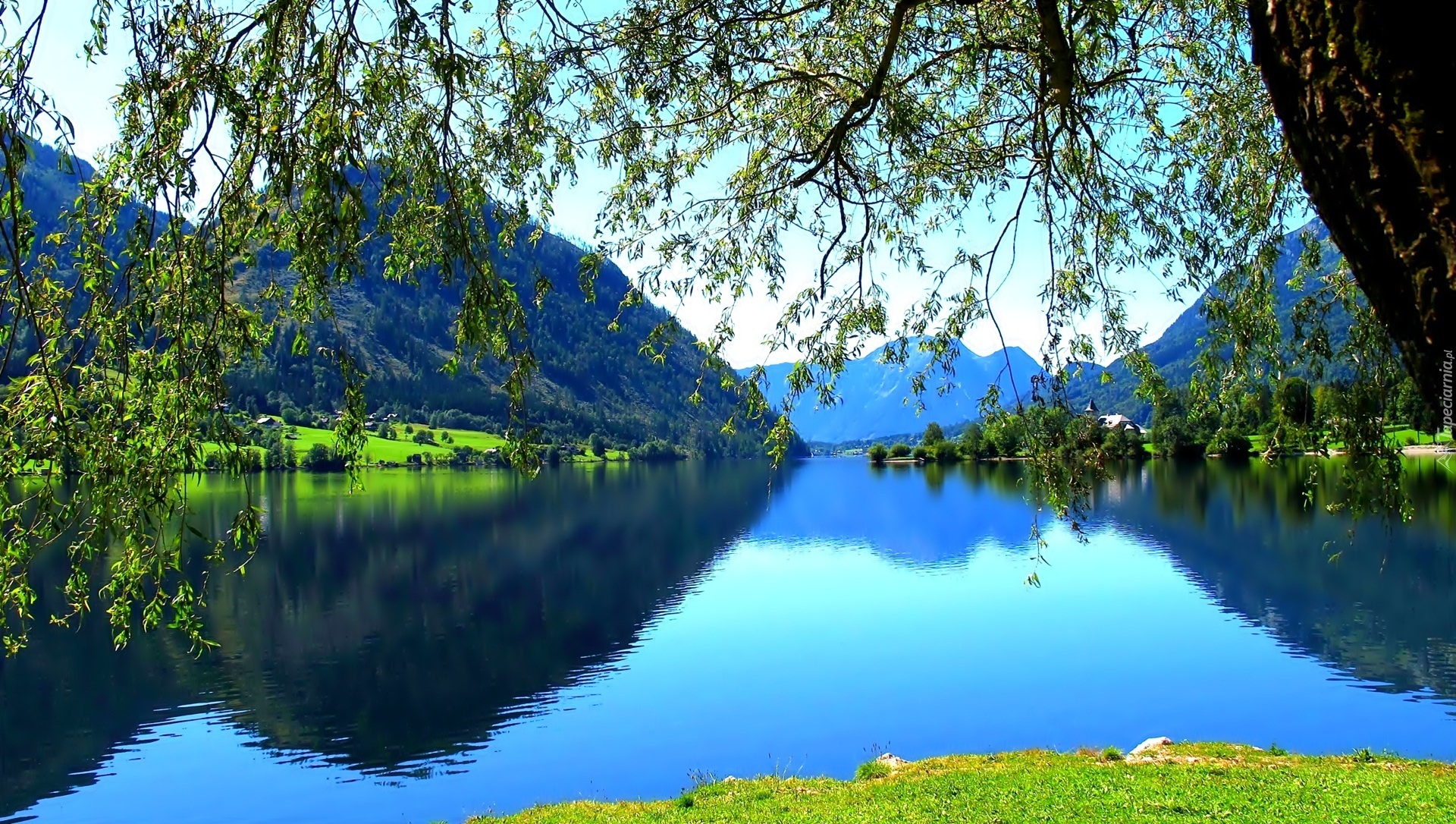 Edytor tapety: Góry, Jezioro, Drzewa, Odbicie