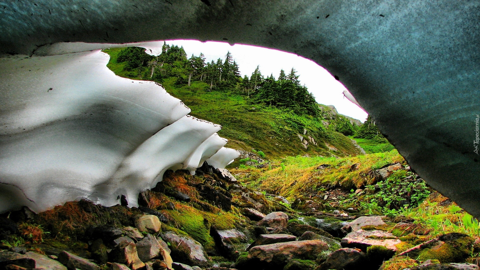 Edytor tapety: Jaskinia, Kamienie, Las, Lód