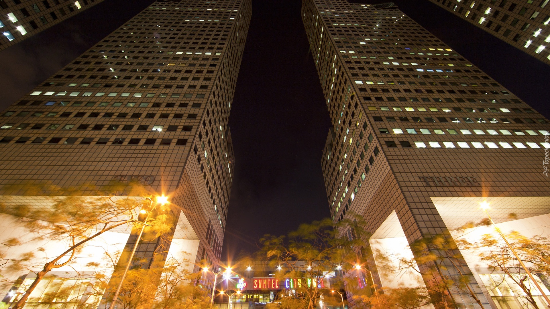 Edytor tapety: Singapur, Miasto, Noc, Drapacze, Chmur
