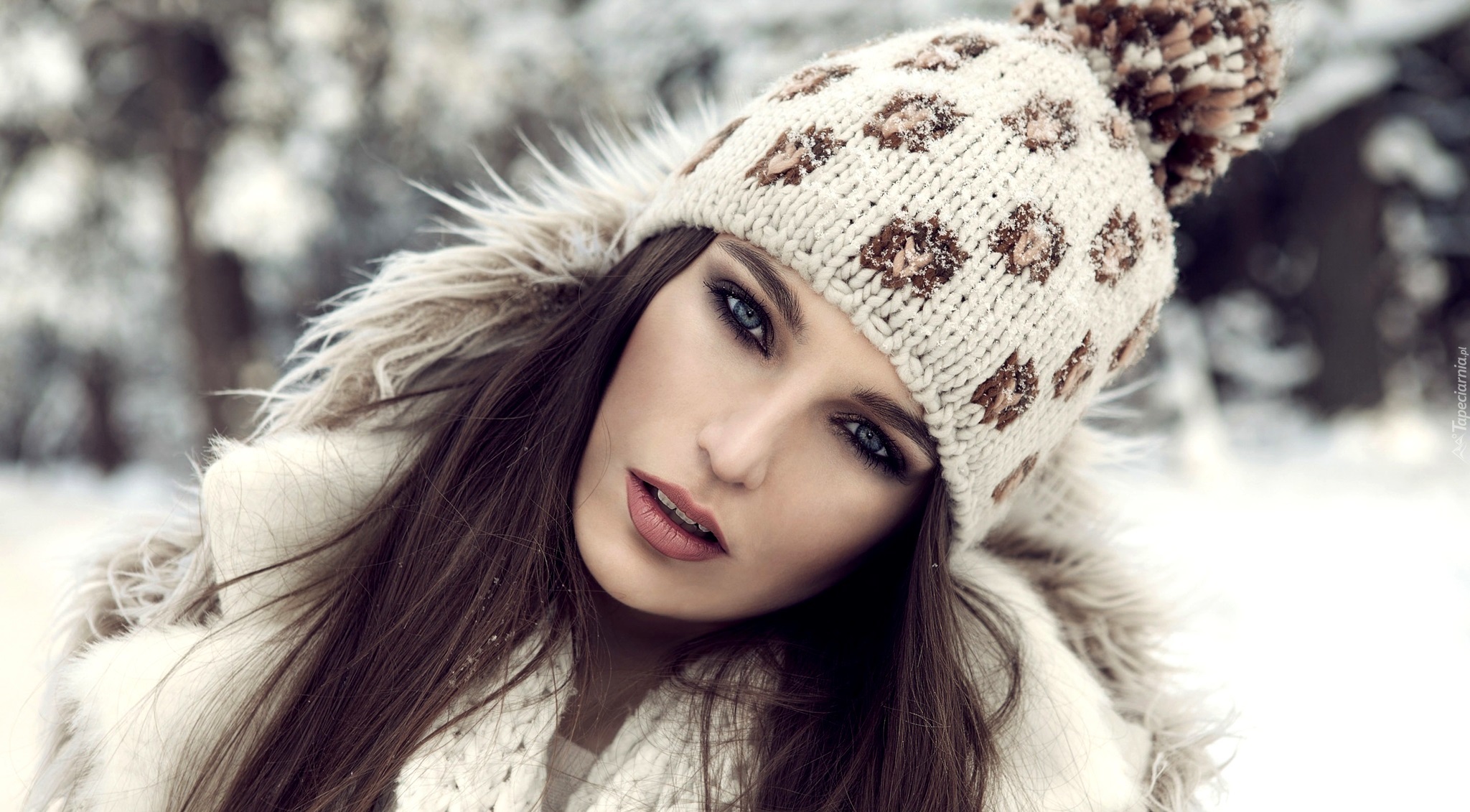 Edytor tapety: Brunetka, Makijaż, Czapka, Moda