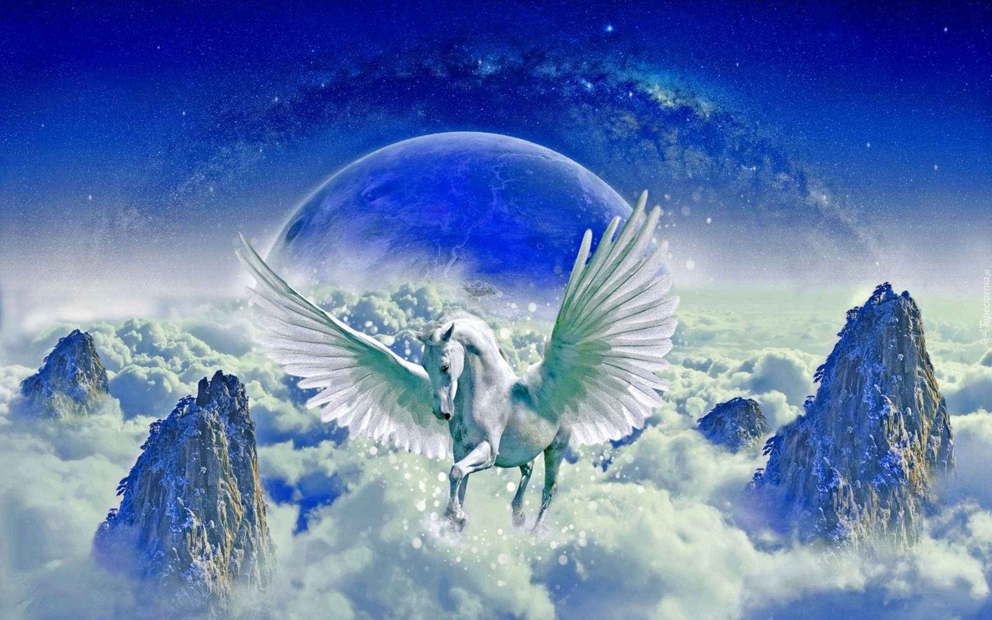 Edytor tapety: Pegaz, Góry, Chmury, Fantasy
