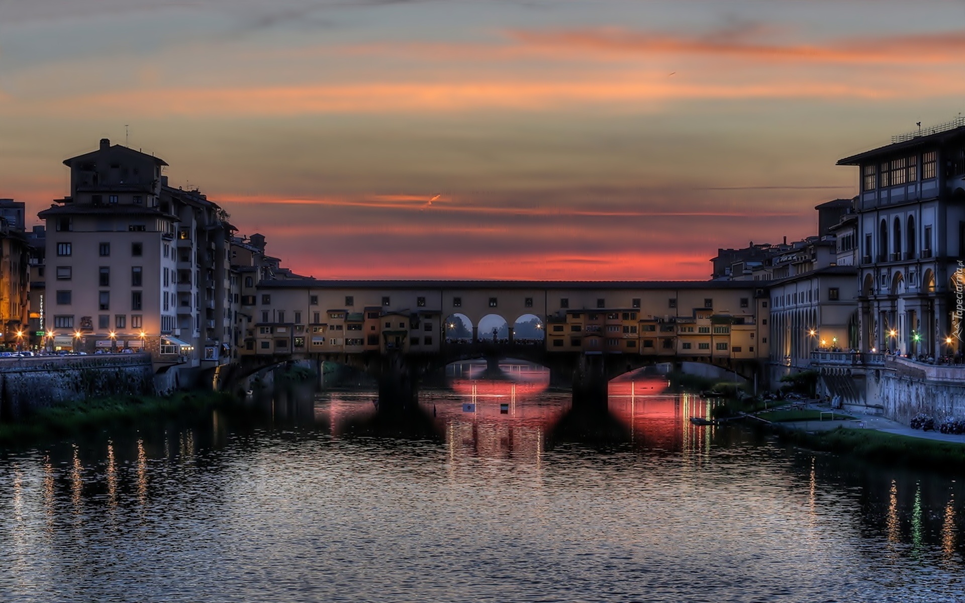 Edytor tapety: Włochy, Florencja, Most, Ponte Vecchio, Noc