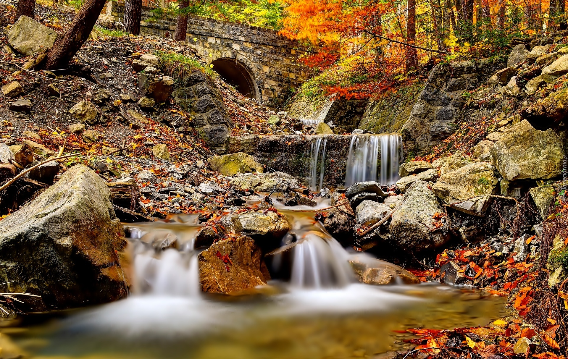 Edytor tapety: Jesień, Las, Kamienie, Wodospad