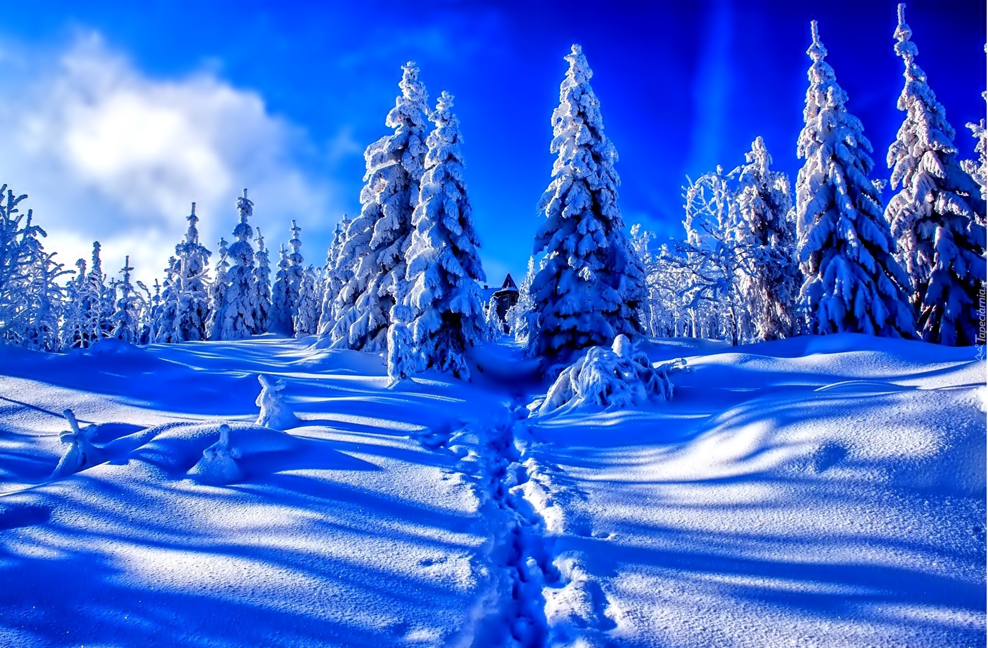 Edytor tapety: Zima, Ośnieżone, Świerki