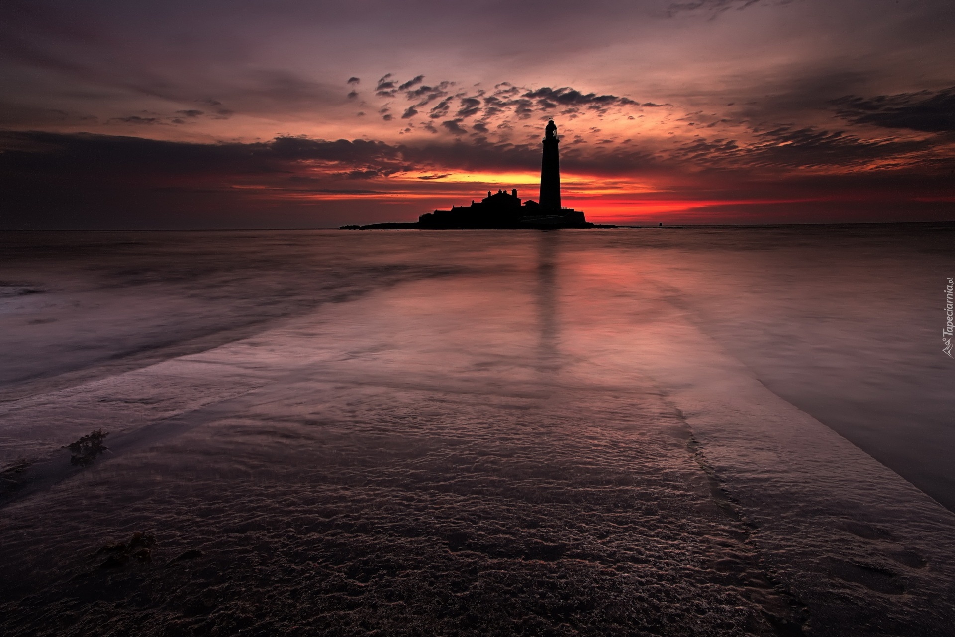 Edytor tapety: Latarnia morska, Morze, Zachód słońca