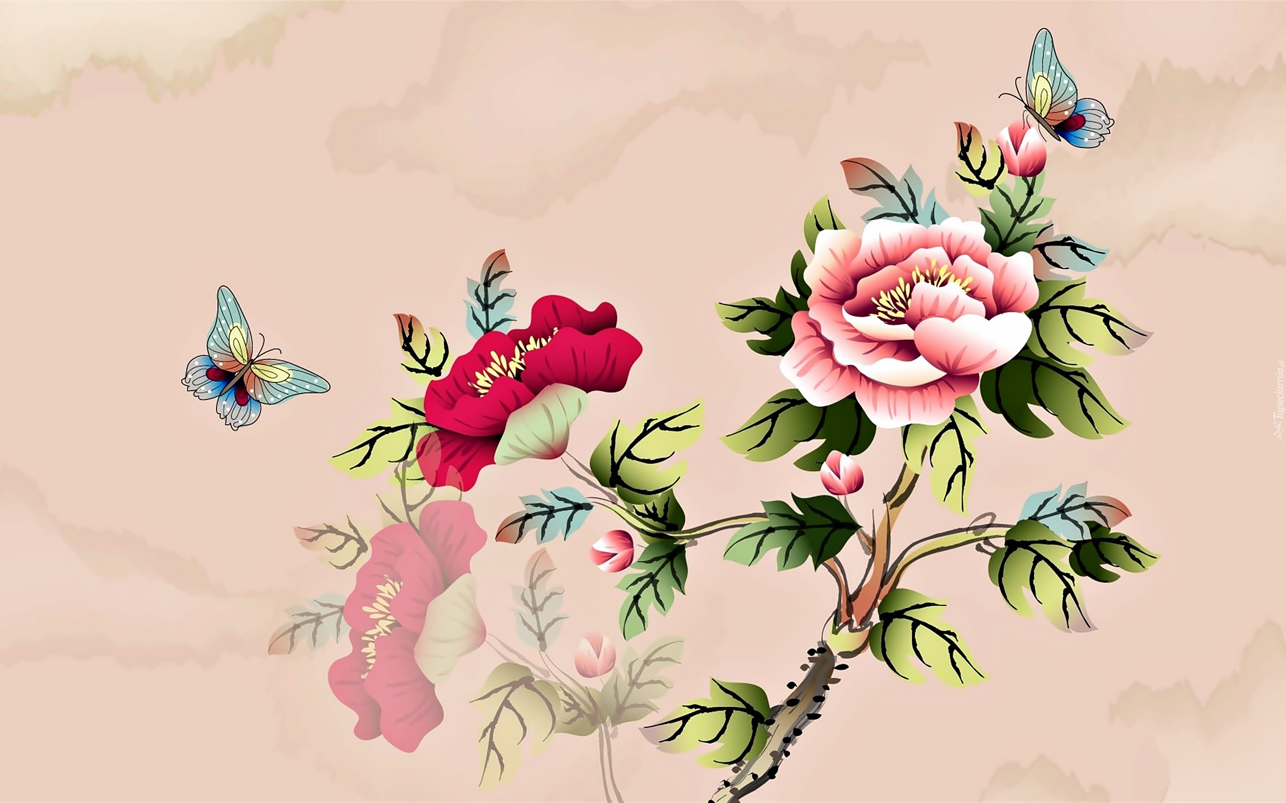 Edytor tapety: Artystyczna, Grafika, Róże, Motyle, 2D