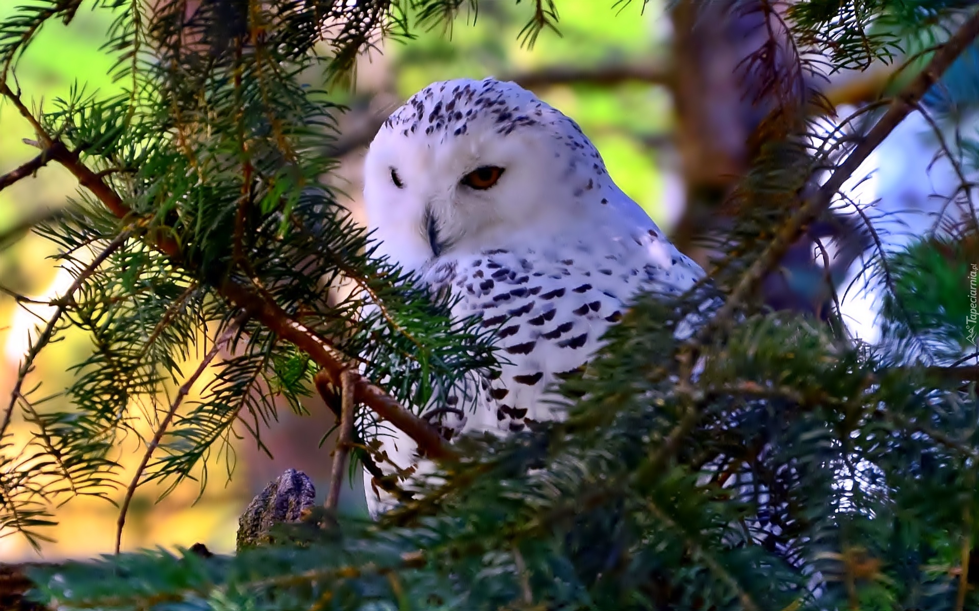 Edytor tapety: Sowa, Śnieżna, Gałązki, Iglak