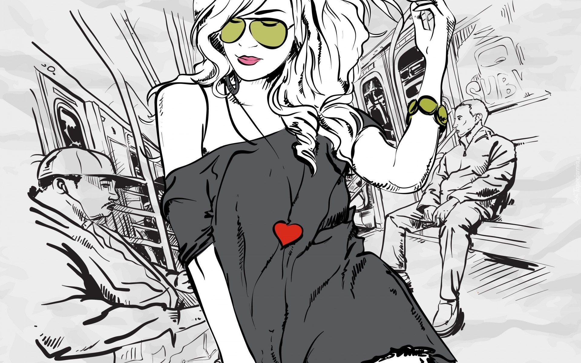 Edytor tapety: Rysunek, Kobieta, Okulary