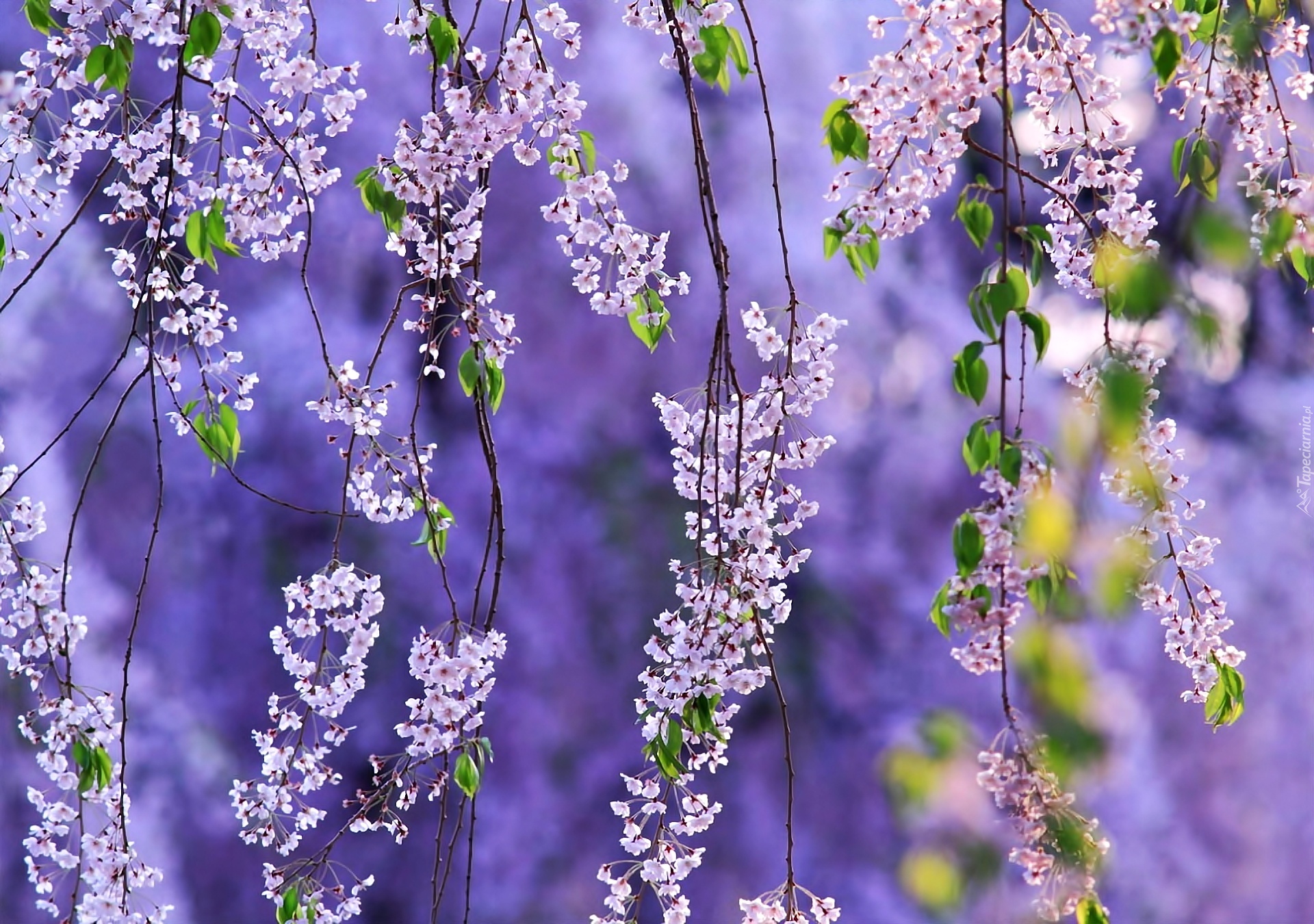 Edytor tapety: Gałązki, Drzewo, Fioletowe, Zwisające, Kwiatki