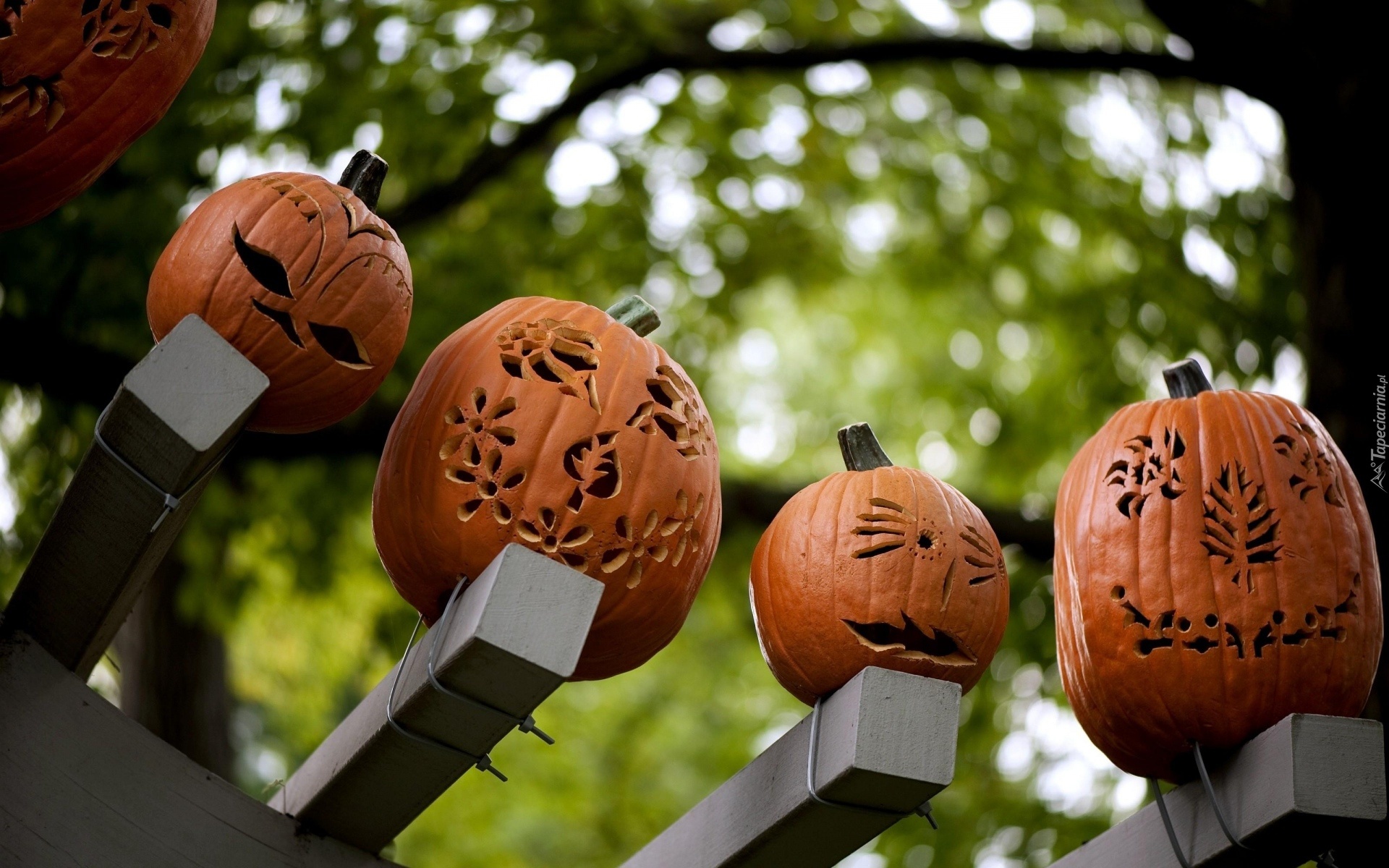 Edytor tapety: Halloween, Ławka, Dynie