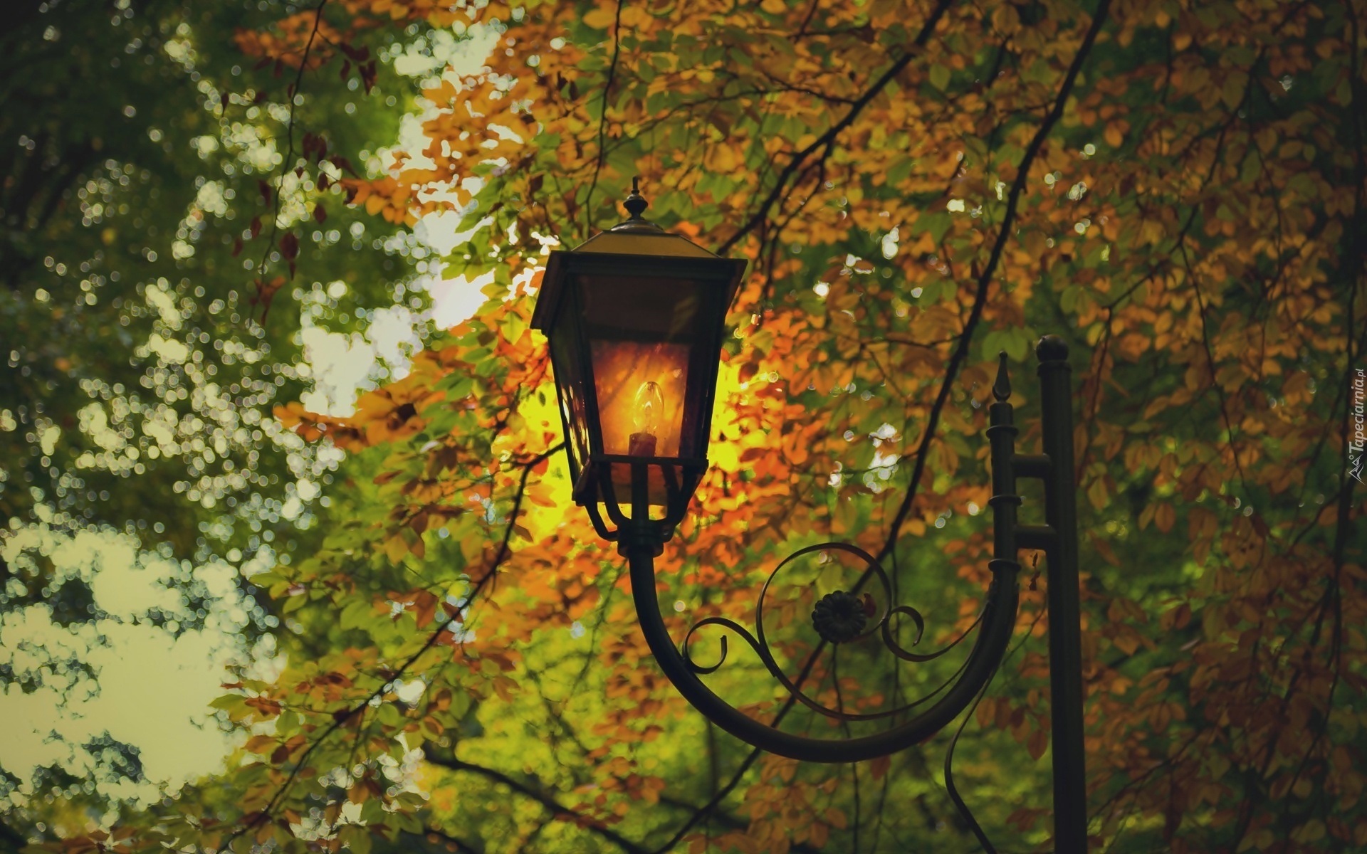 Edytor tapety: Jesień, Drzewa, Liście, Latarnia, Park