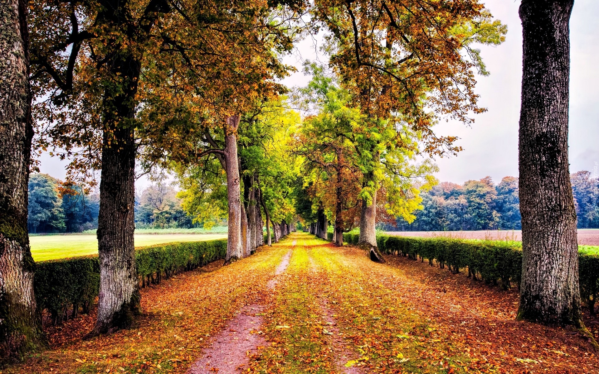 Edytor tapety: Jesień, Drzewa, Droga, Liście