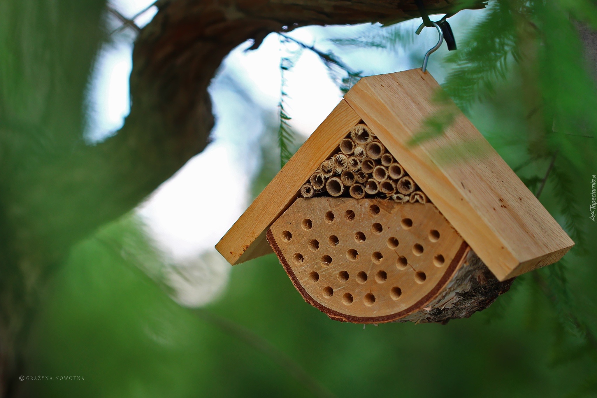 Edytor tapety: Domek, Dla, Owadów, Zapylających, Drewniana, Budka, Dekoracja