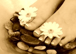 Edytor tapety: SPA, Kamienie, Stopy, Białe, Kwiaty, Margerytki